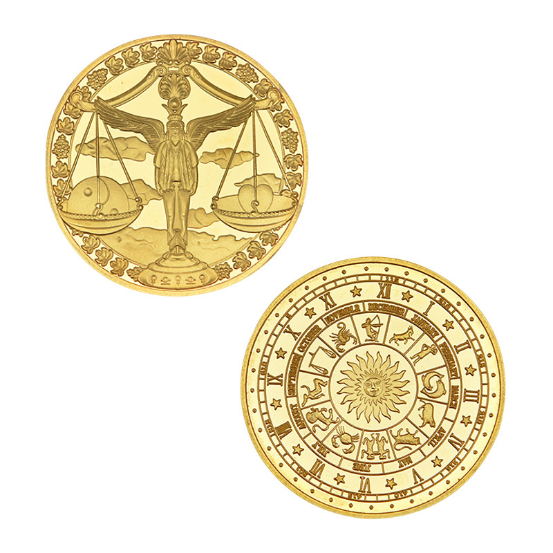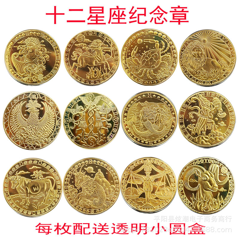 ヨーロッパとアメリカの12星座記念メダル金メッキ記念コインタロット願い12星座コイン外国貿易金属記念メダル