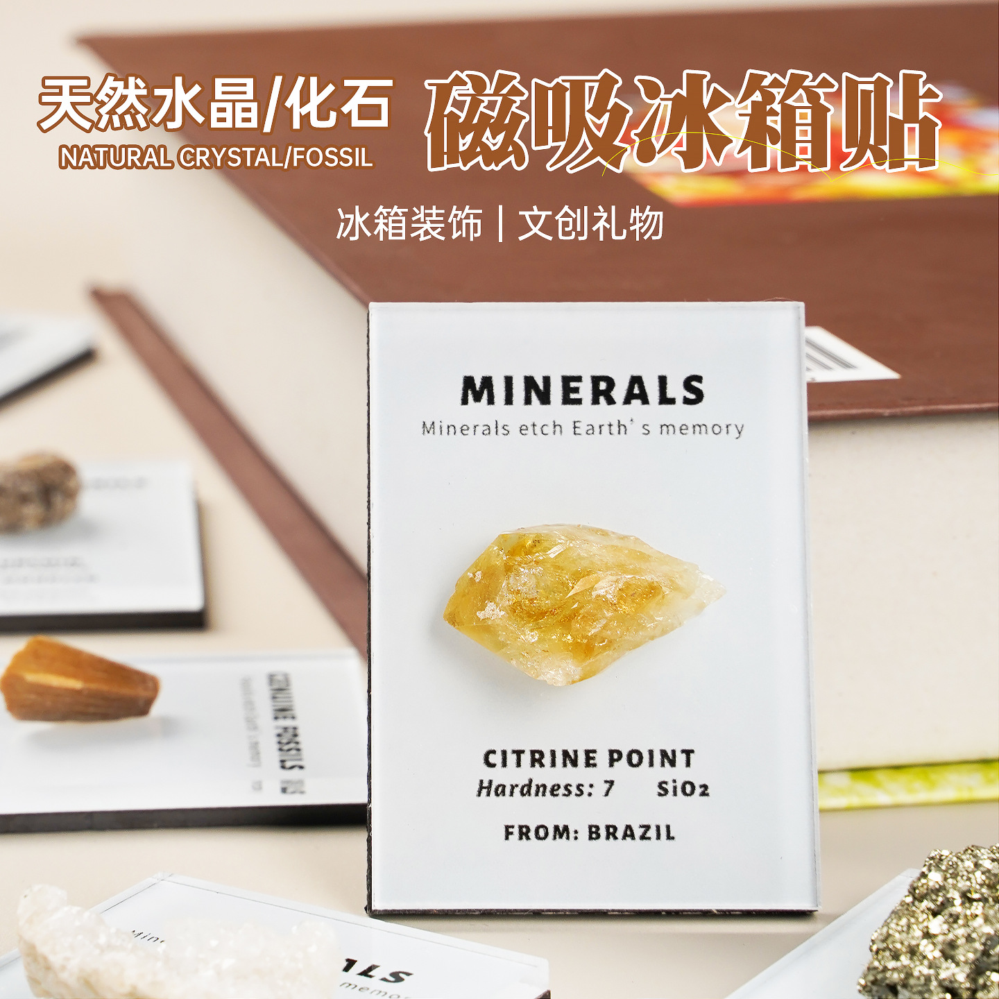 天然水晶原石冰箱贴化石矿石标本磁吸冰箱贴黄水晶文创家居装饰品