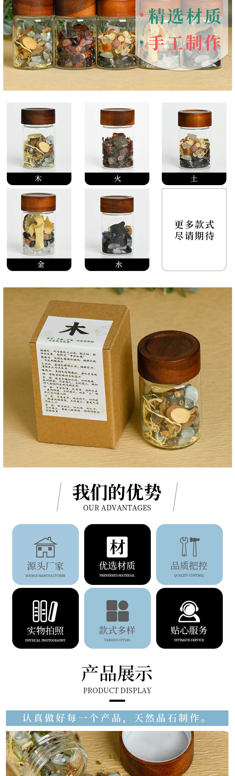 跨境欧美天然水晶原石矿石标本收纳盒套装木质微型珠宝架科普摆件