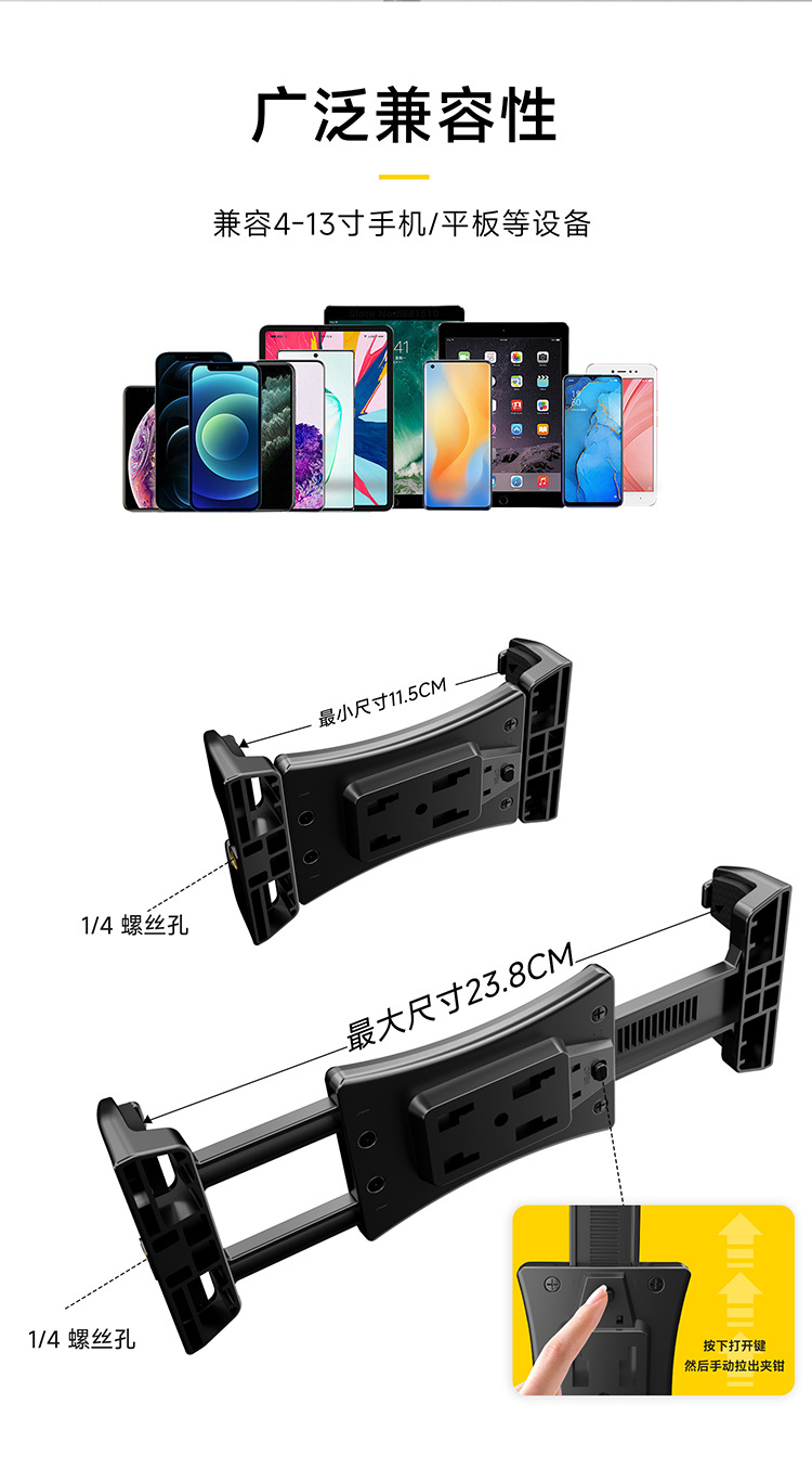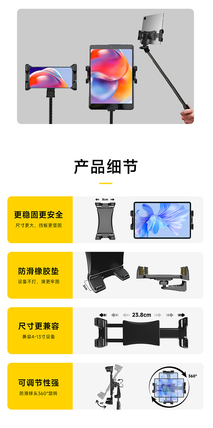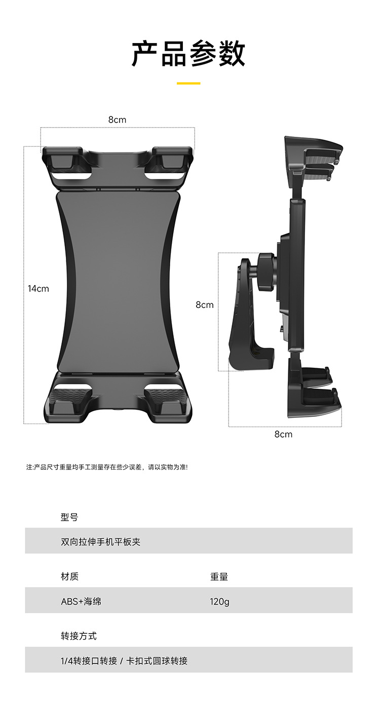 タブレットクリップ,ボールヘッドブラケット付きフラットクランプ
