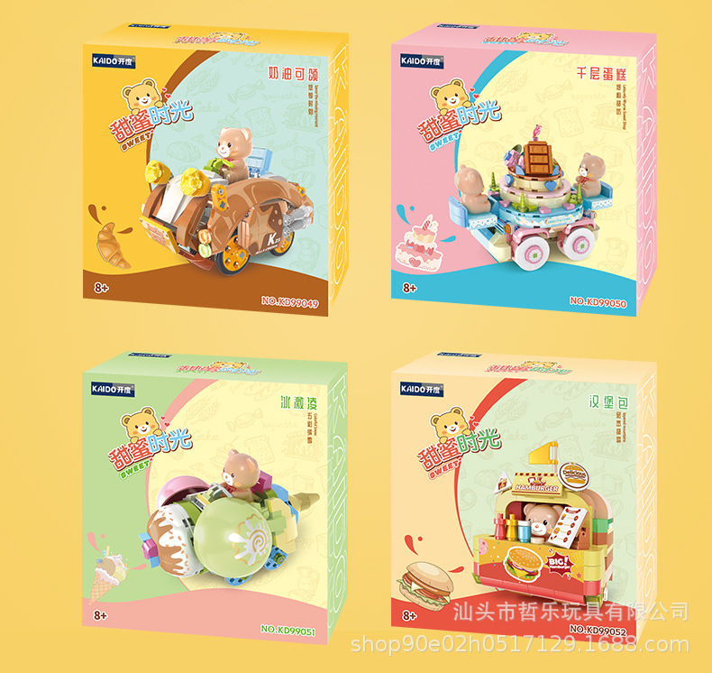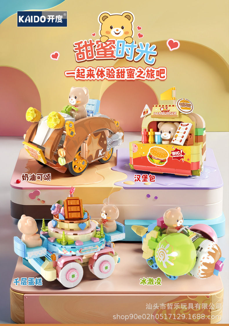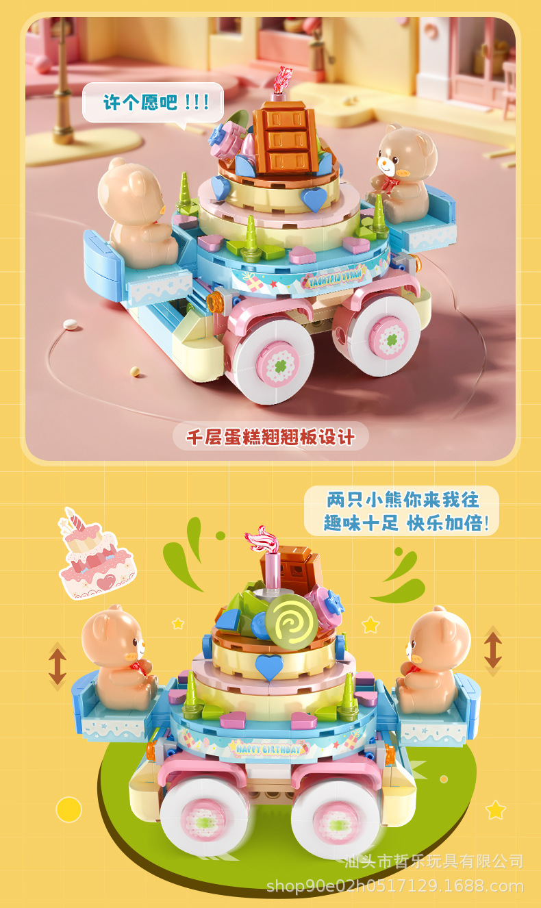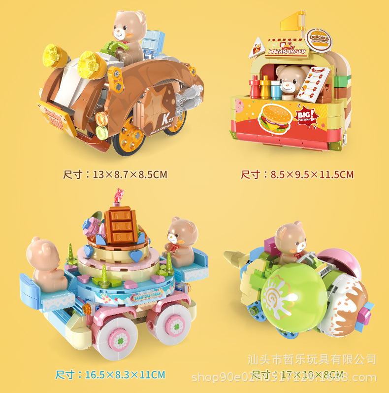 クリエイティブクマキャンディケーキストリートシーン漫画小粒子パズル組み立てビルディングブロックおもちゃホリデーギフト卸売