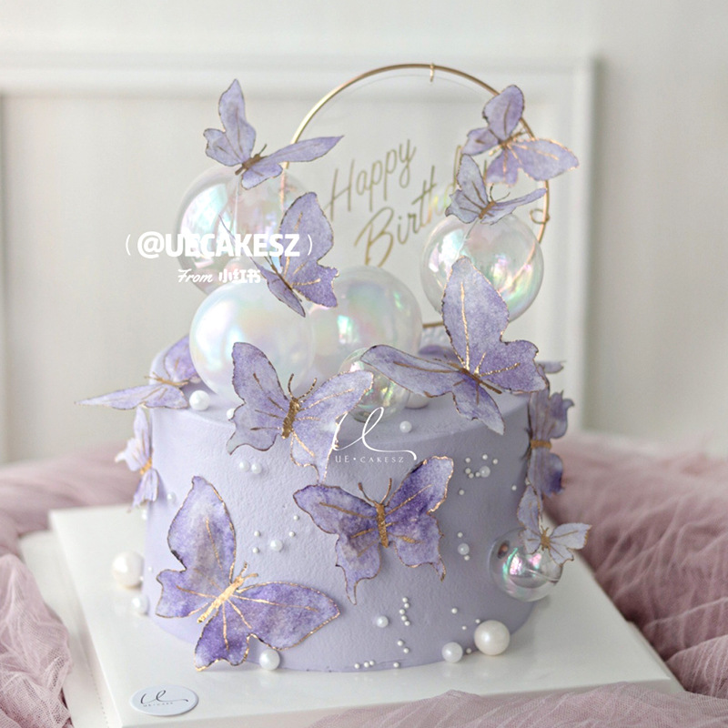 インススタイル紫蝶ケーキデコレーションピンクネットレッド妖精カードマジック