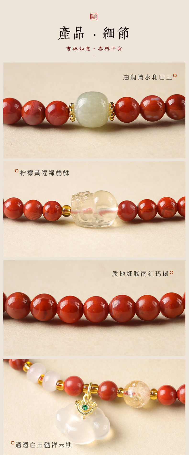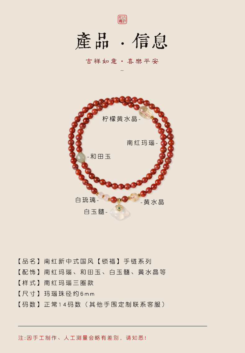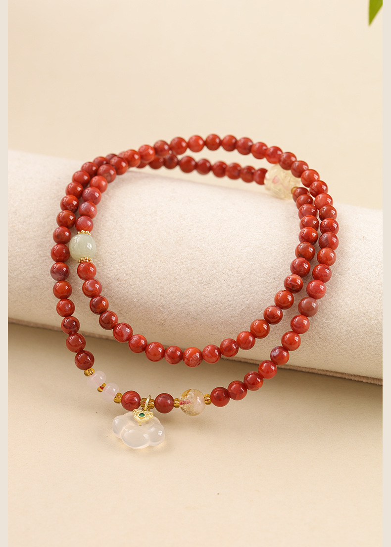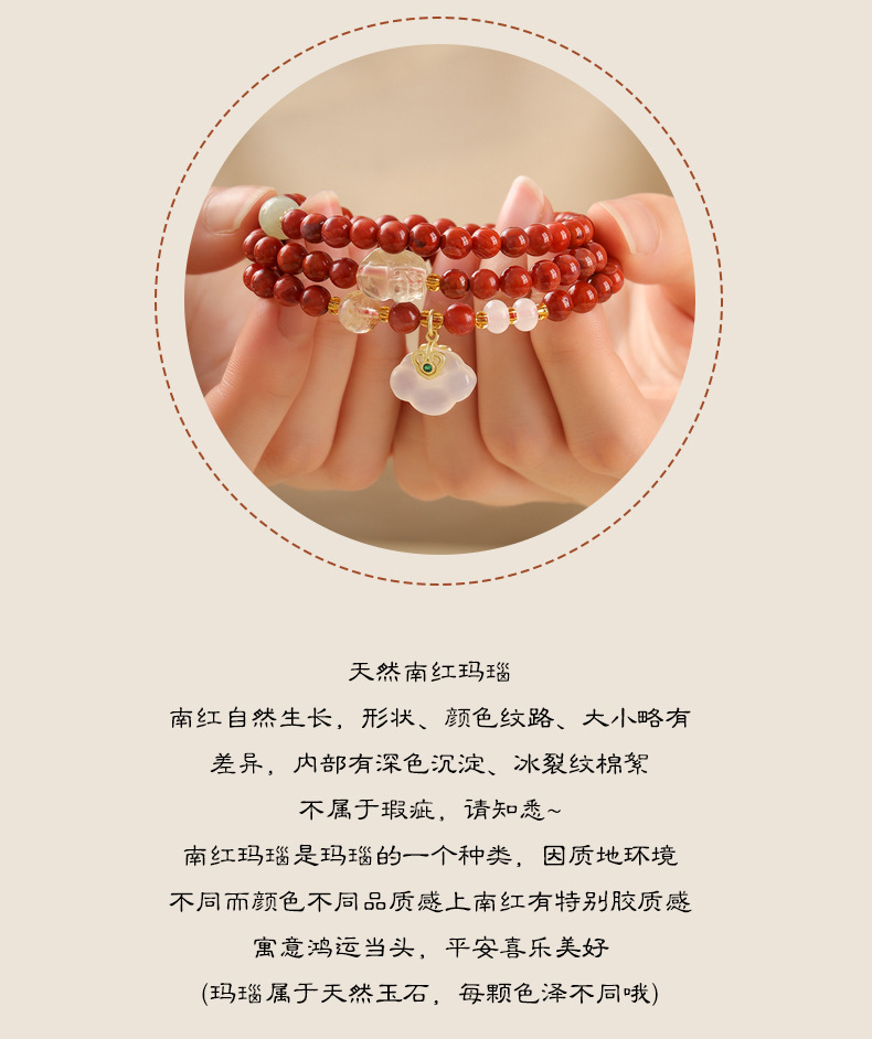 新しい中国風の国民的トレンドレッドユン南赤瑪瑙三リング気質2025動物の幸運如意祥雲ロックガールズブレスレット