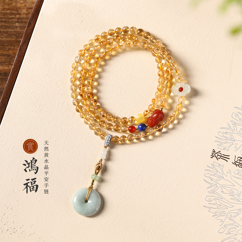 黄水晶のブレスレットは約108個の数珠翡翠が無事に鴻運を掛けます。