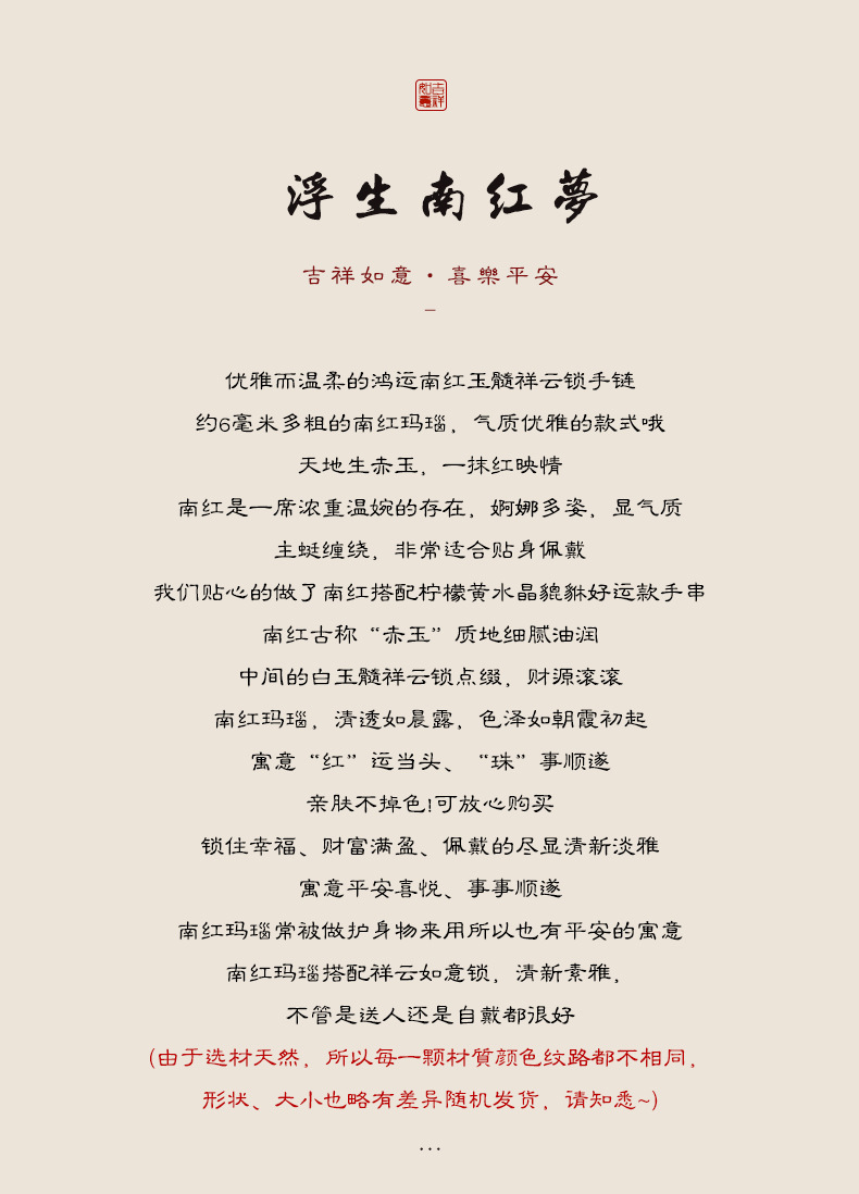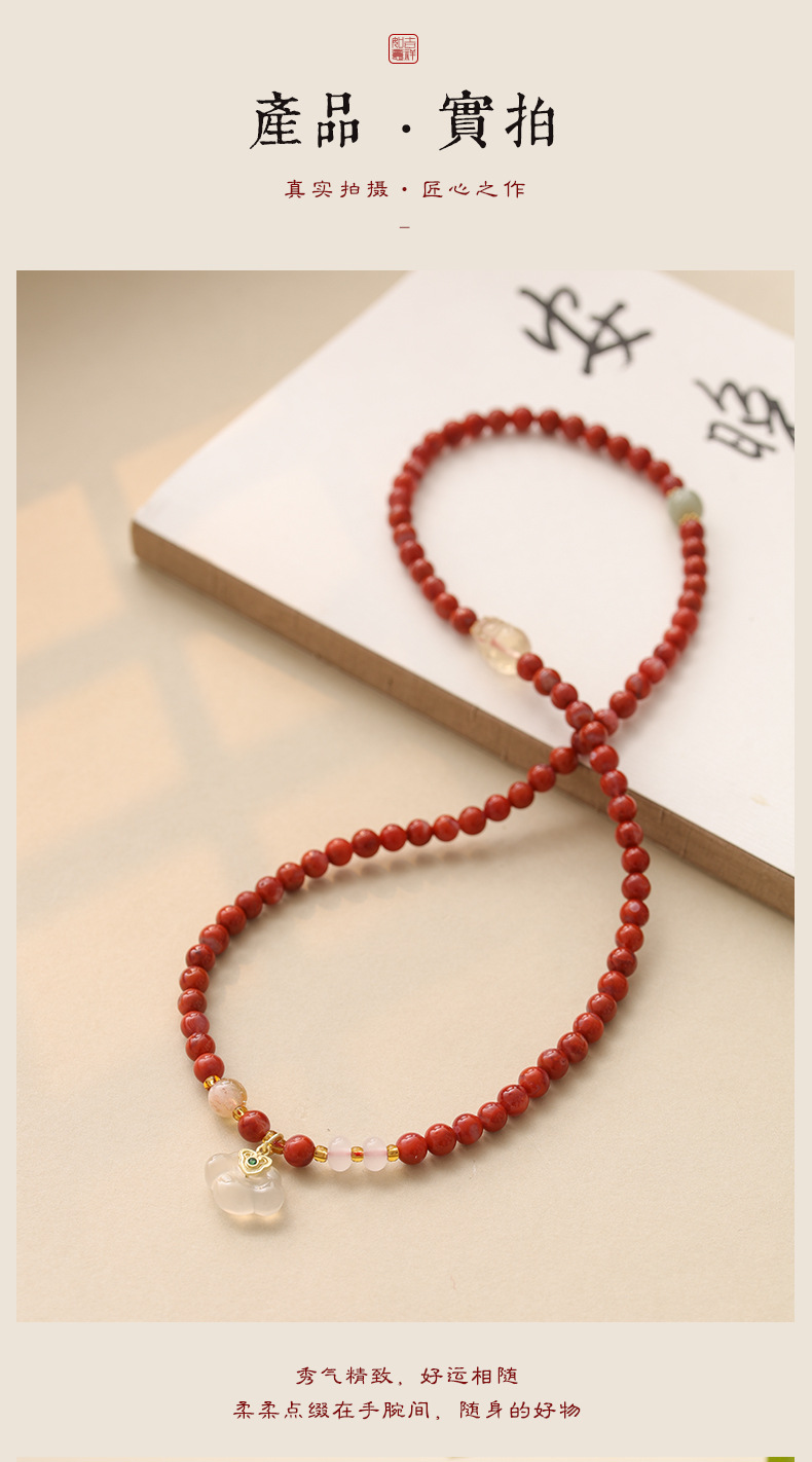 文芸小清新軽豪華ブレスレット女氷漂南紅桃花粉と田玉走環祥雲穂子多輪ブレスレット