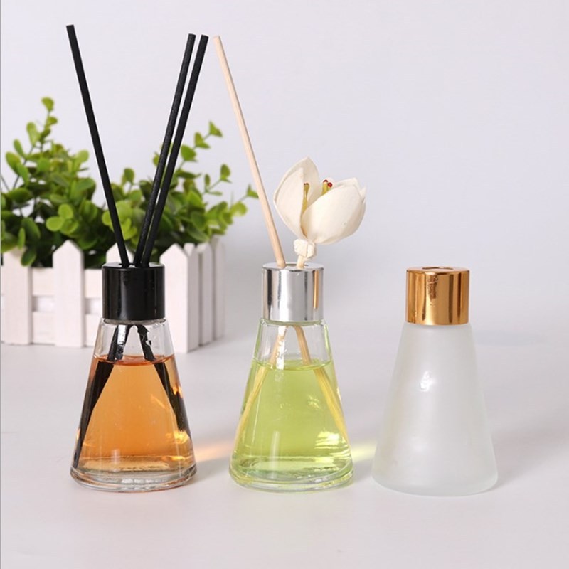 本产品有透明蒙砂锥形香薰瓶,香薰盖颜色有亮金、亮银、亮黑、等,并可为瓶身进行丝印、蒙砂、喷涂、烫金、烤花等深加工工艺处理,支持订制,具体订制事宜请联系客服。厂家销售 质优价廉