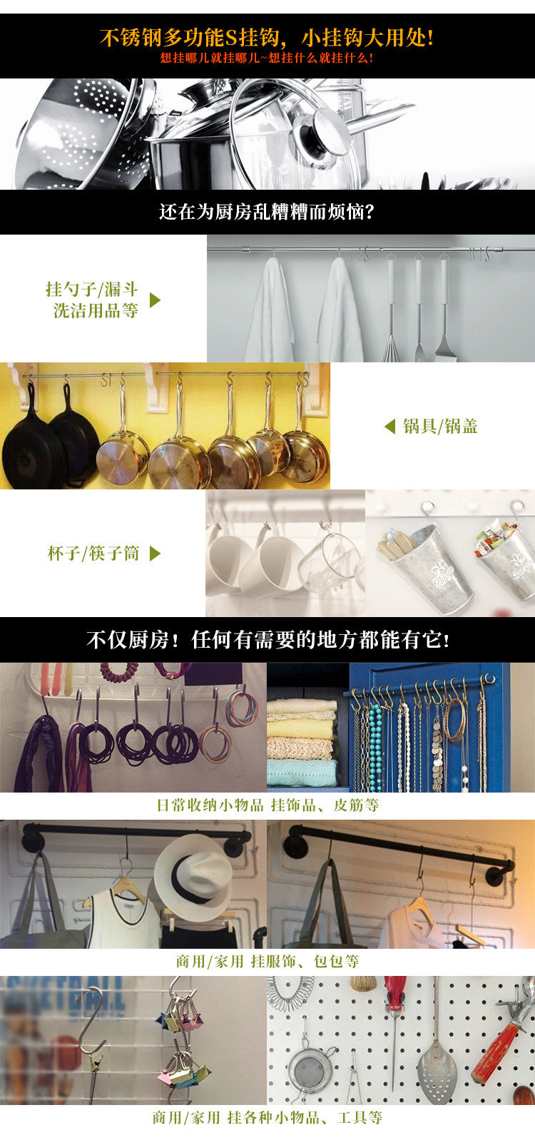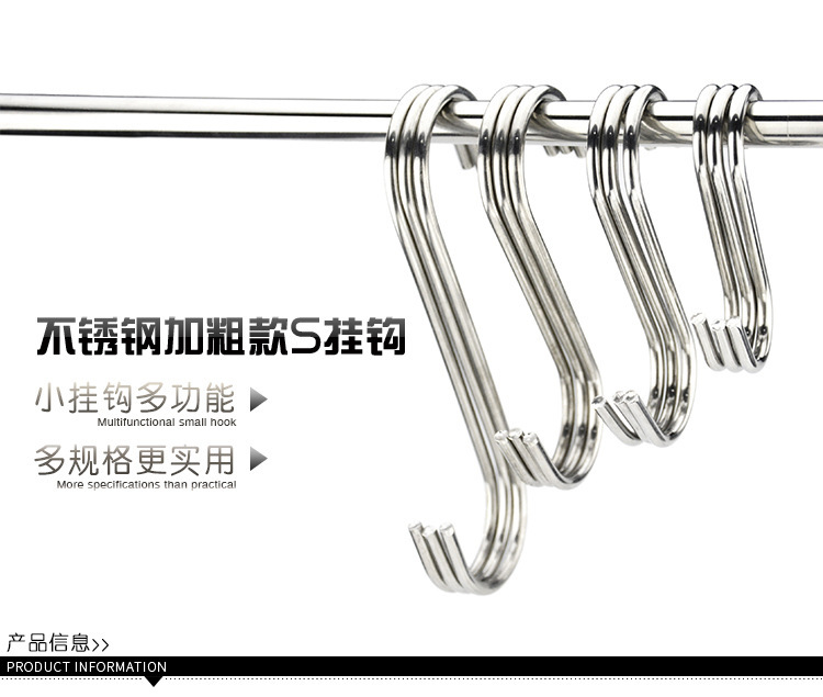 不锈钢s型挂钩晒香肠腊肉厨具厨房浴室用大号多功能免打孔s单勾子
