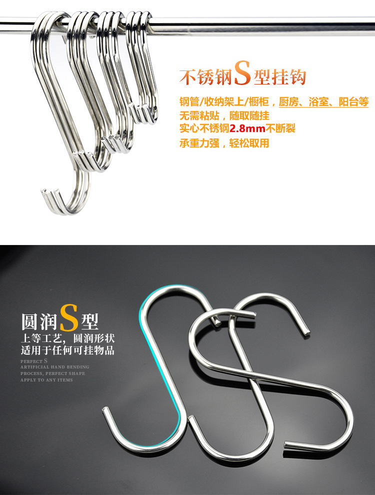 不锈钢S型挂钩壁挂浴室厨房S形挂钩柜门门后S钩子多功能s勾小钩子
