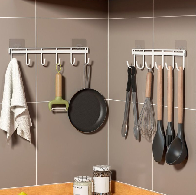 鉄芸六連フックキッチン強力フック家庭用浴室穴なし6連フック壁掛け無痕ビスコースフック