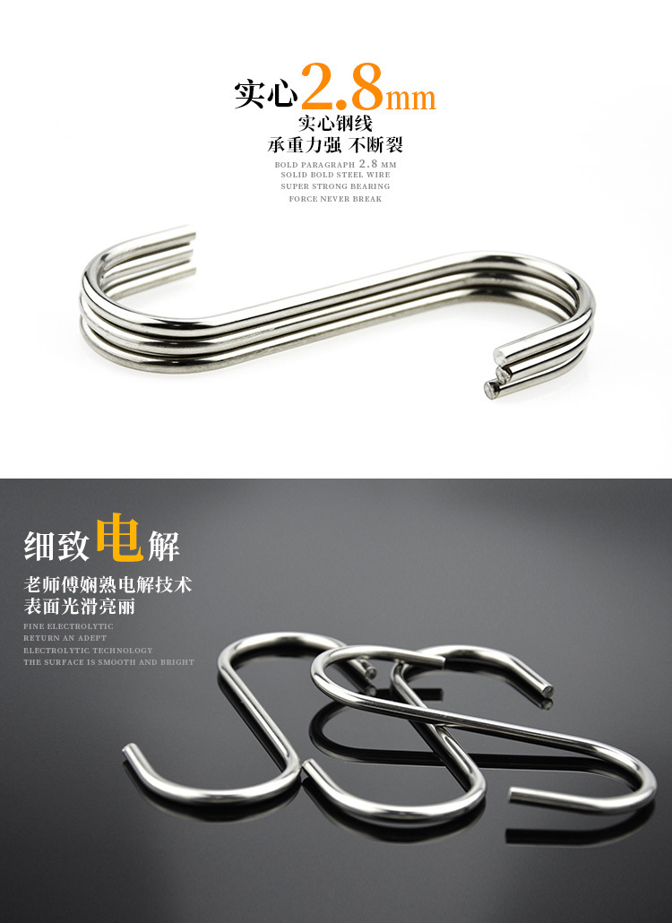 2.8ラインステンレススチールsフックs型メタルsフックキッチン寝室バスルームドア后ろクロスバーフック多机能肉フック