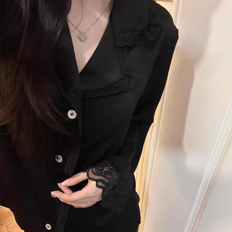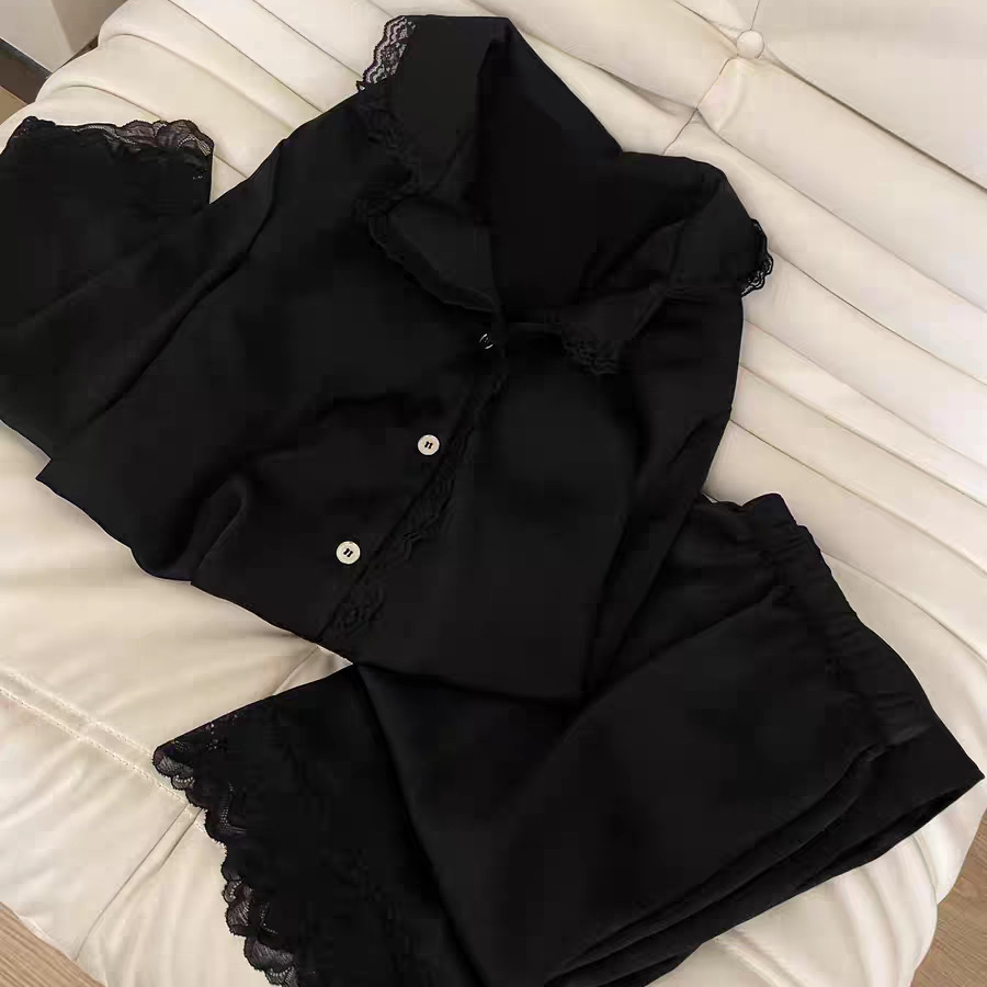 氷と雪のシルクパジャマ女性の春と秋 2025 新しい夏長袖ハイエンドブラックレースホームウェアセット