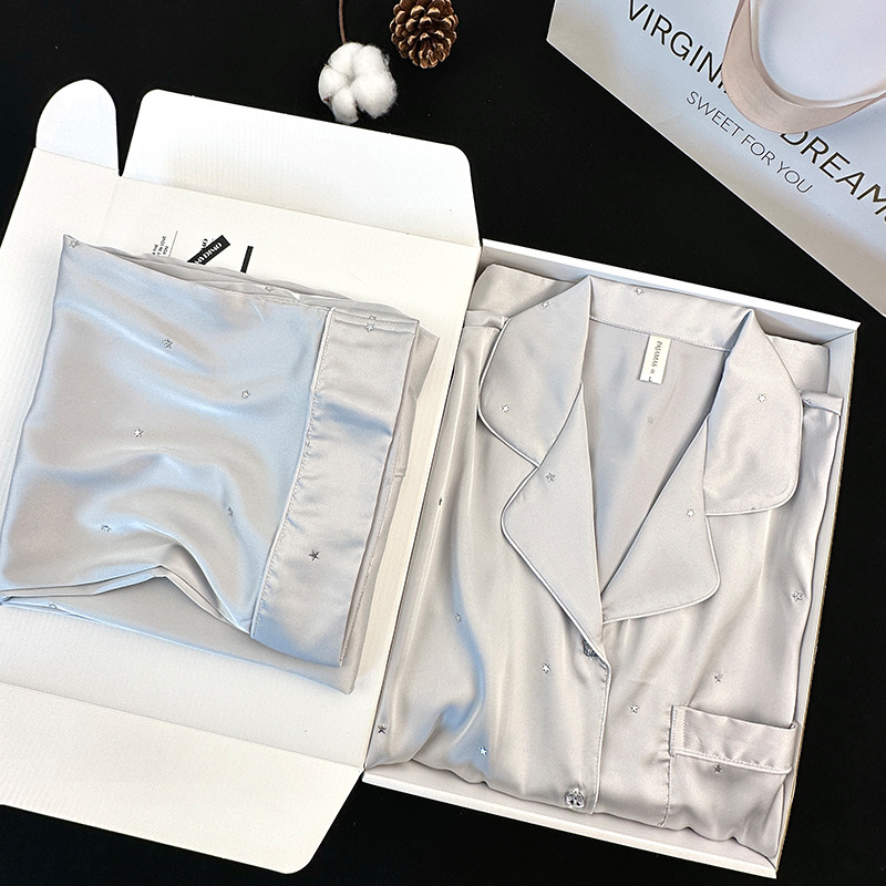 氷糸パジャマ女子春秋金2025新型長袖大サイズ輝点星高級感家庭服セット夏