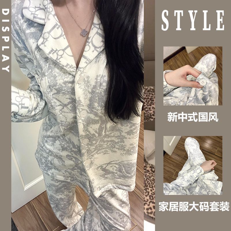 高级感轻奢水墨画德绒睡衣秋冬新款长袖长裤家居服小红书抖音批发