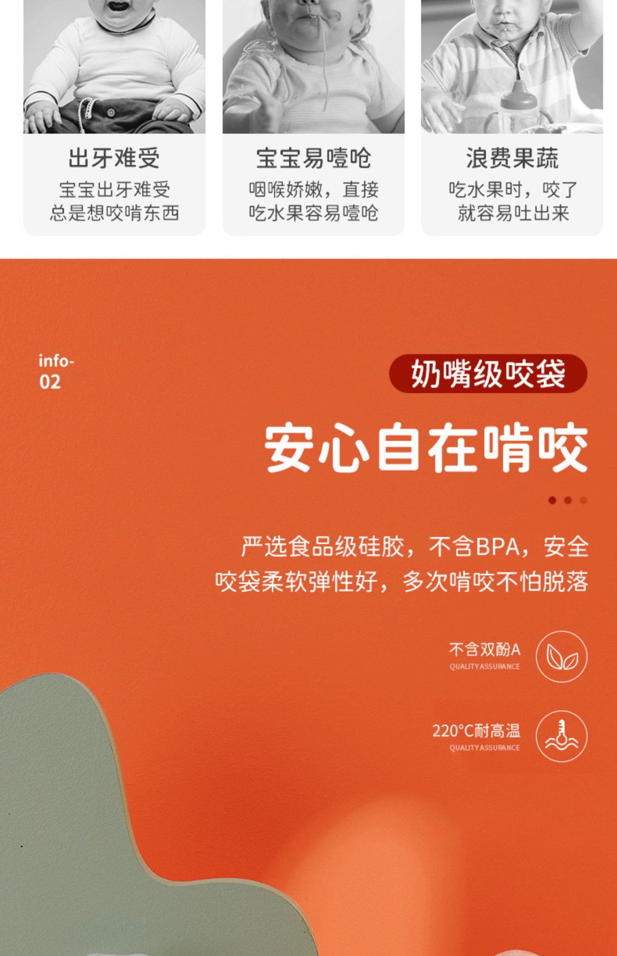 ベビー果物と野菜の噛み付きおもちゃ、歯固め、噛み付き歯袋、ベビーフルーツアーティファクト、栄養補助食品、シリコン歯固めツール