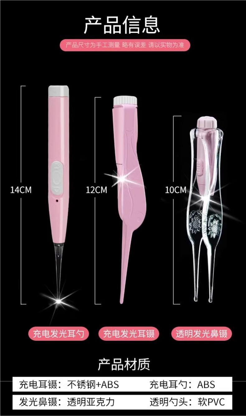 耳かき、発光耳かき、子供用耳垢ピンセット、耳かきツール、耳かきビジュアル