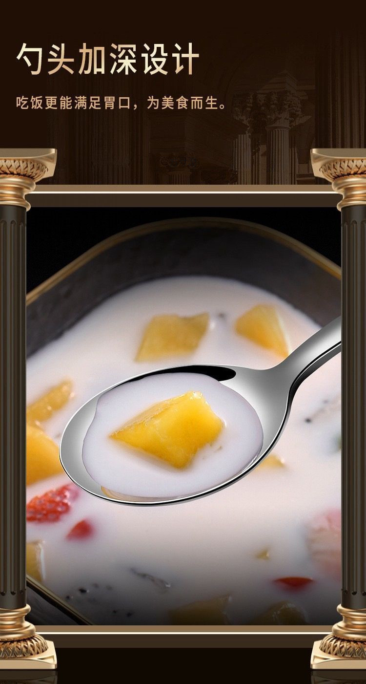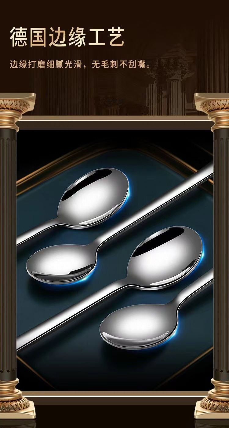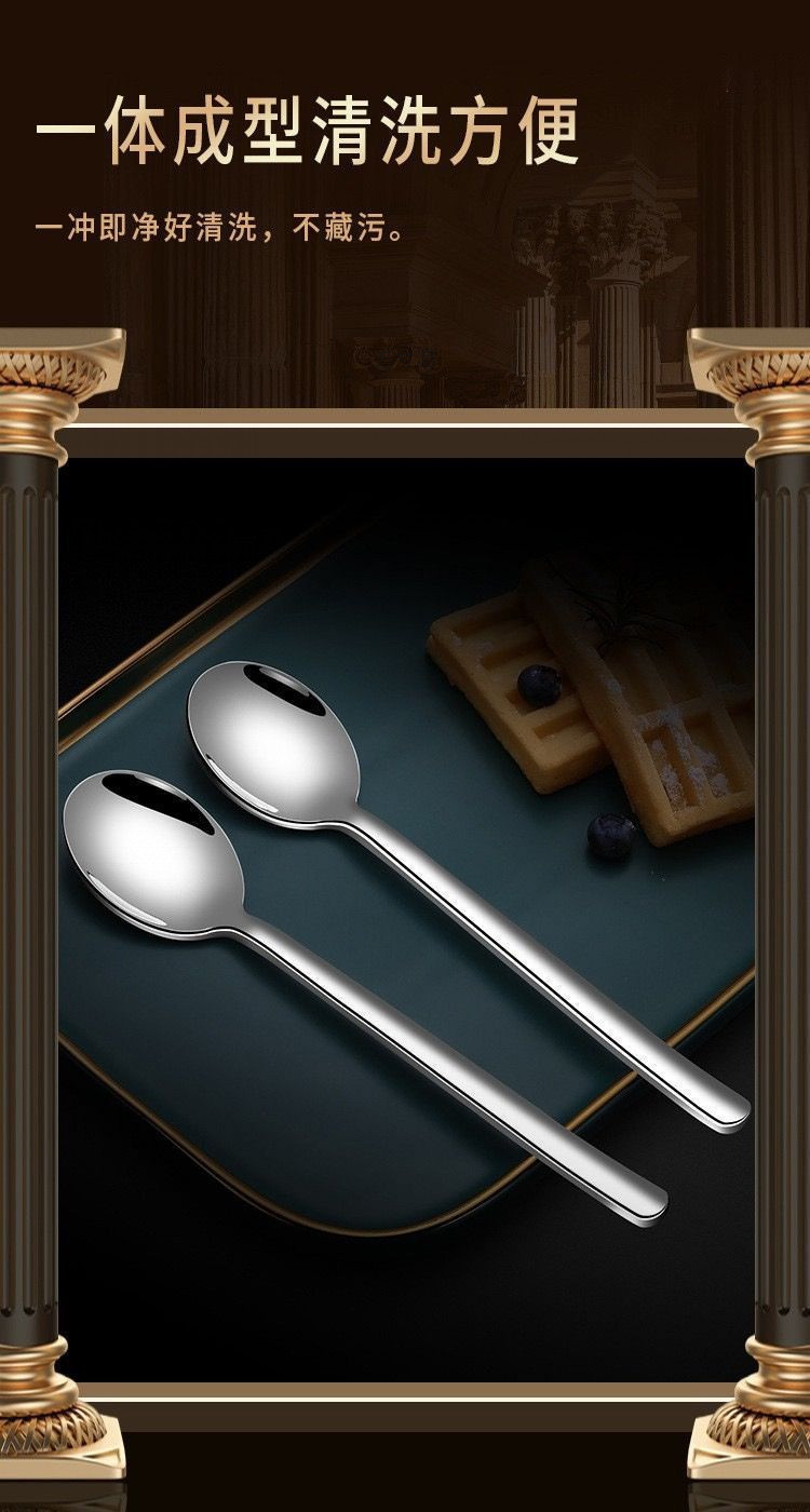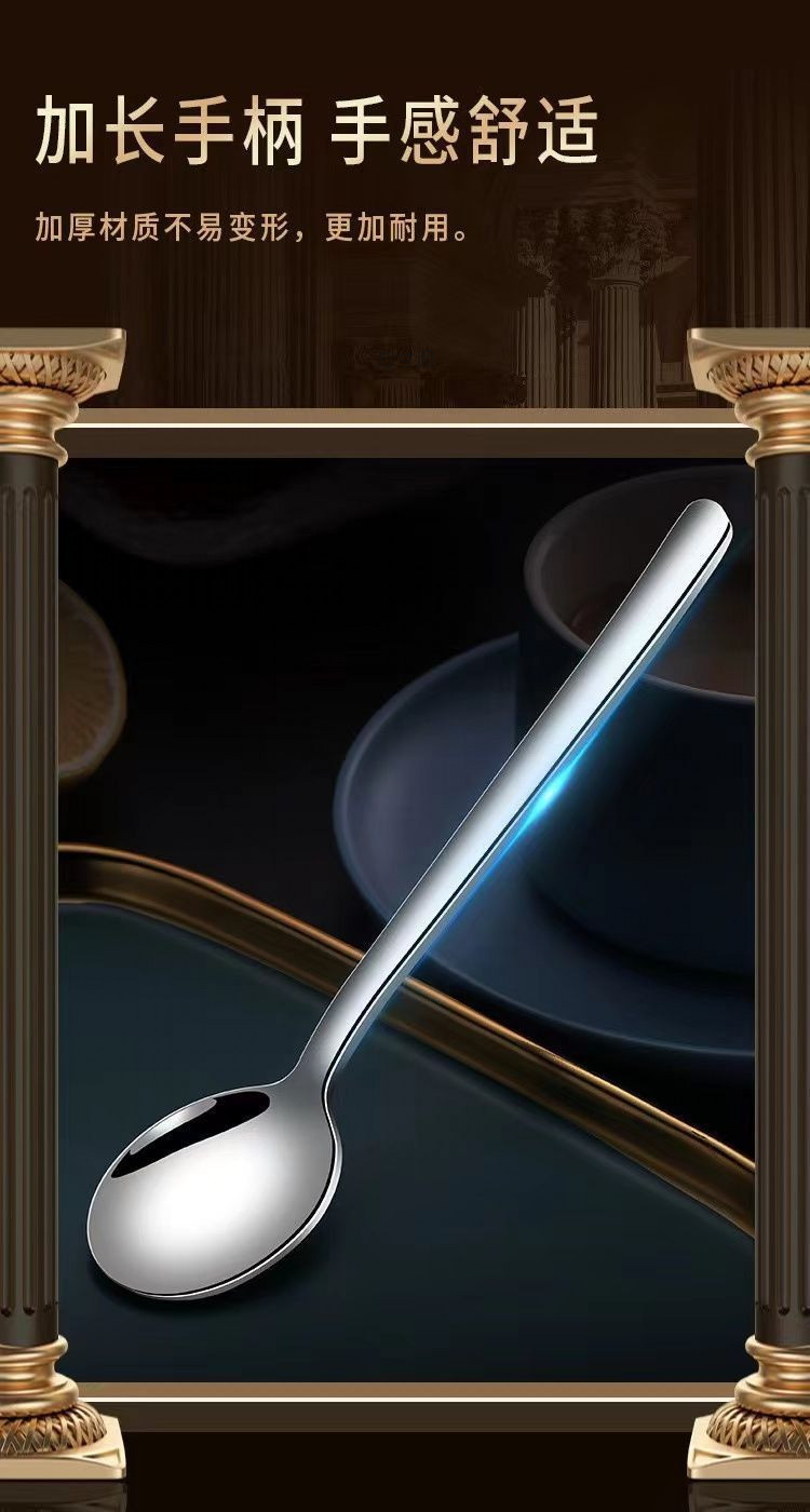 304不锈钢勺子家用高档精致调羹吃饭西餐高颜值长柄加深汤勺手柄