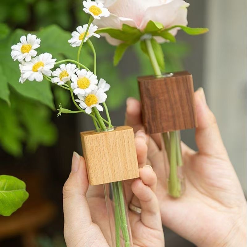 实木创意插花器冰箱贴磁铁磁吸装饰立体种花养花玻璃试管花瓶个性