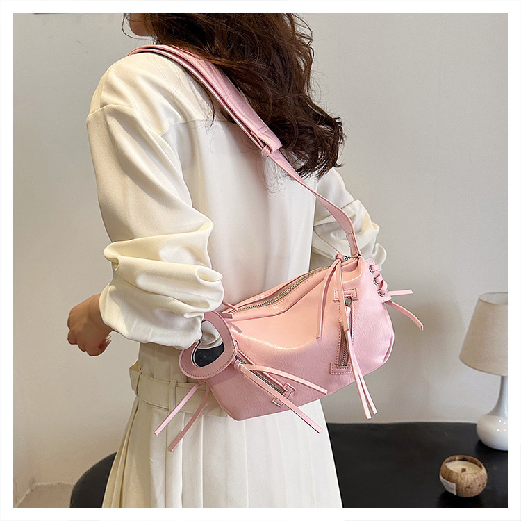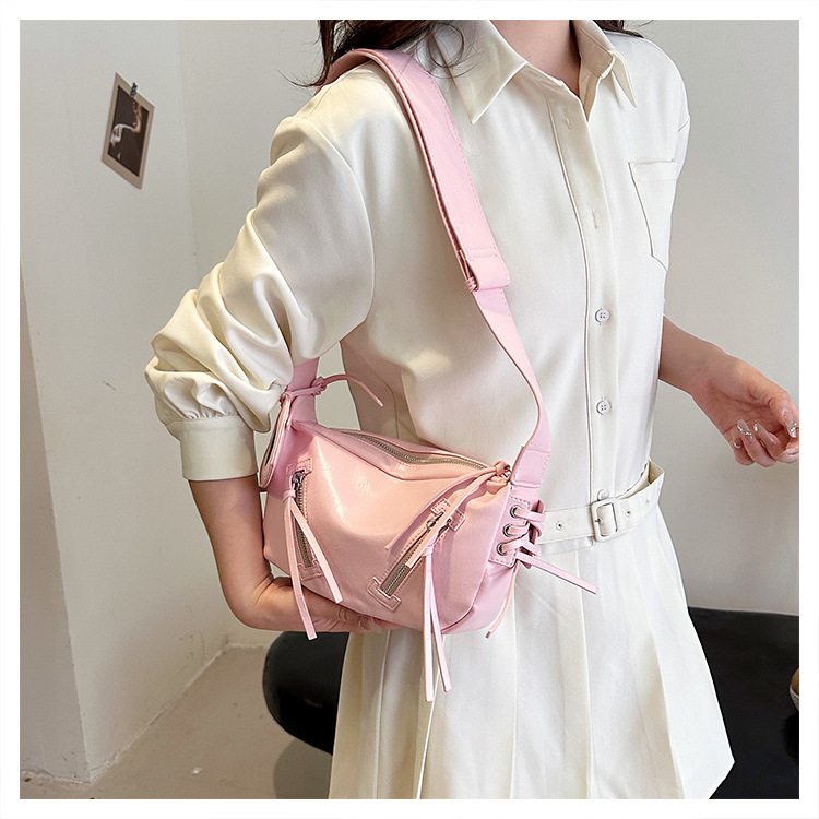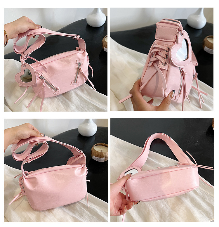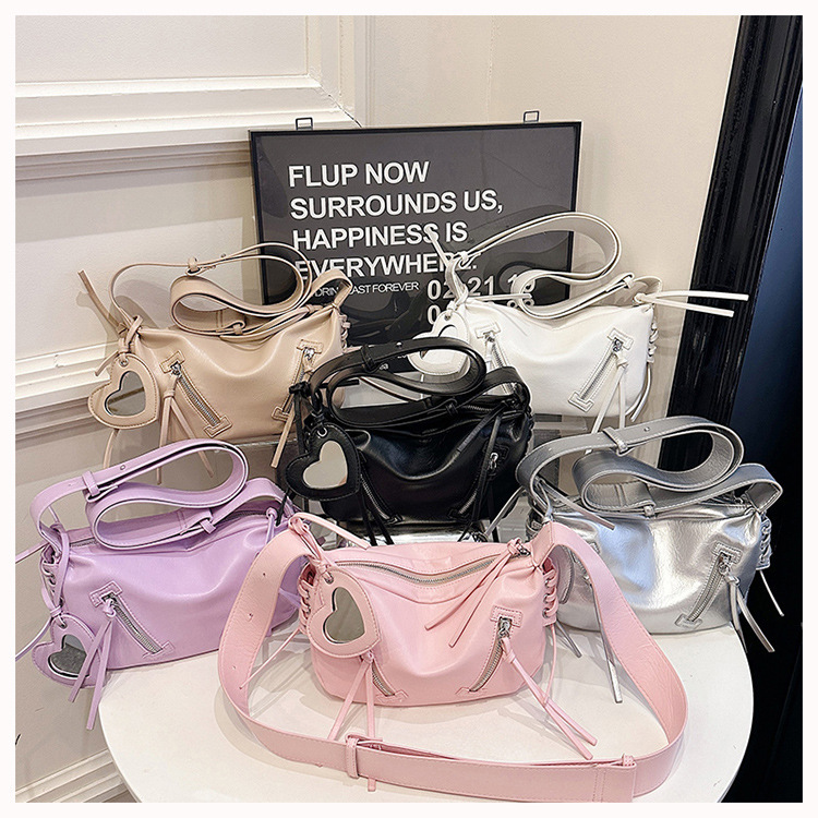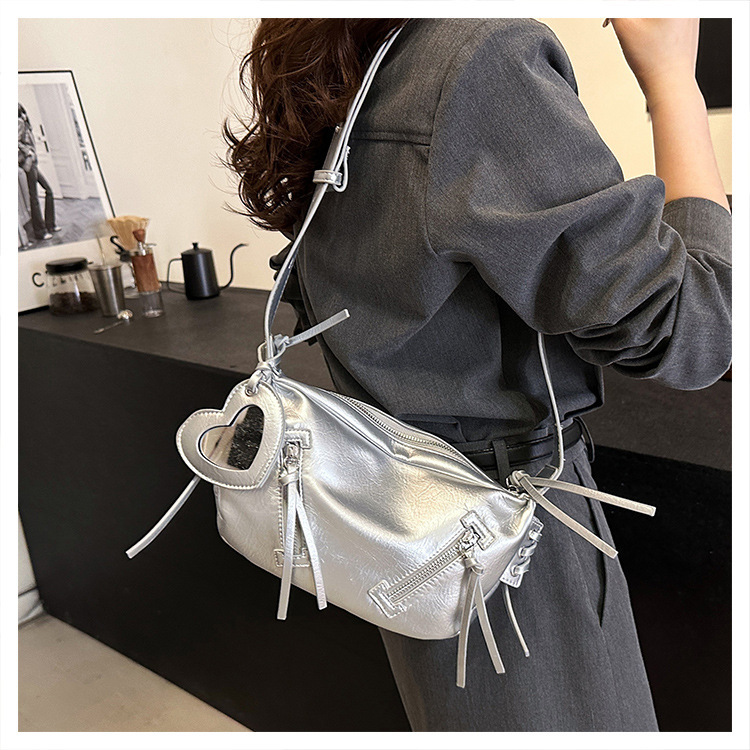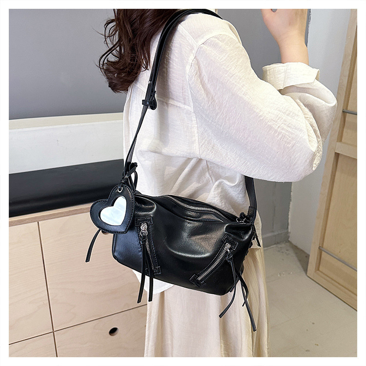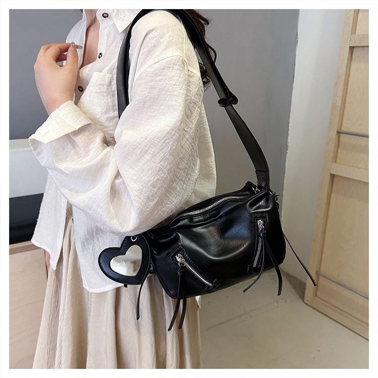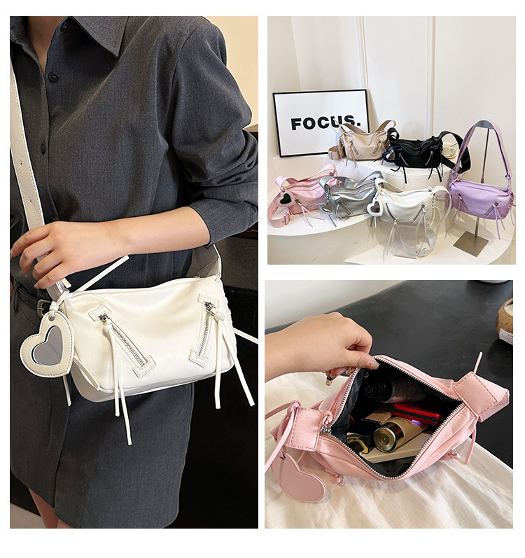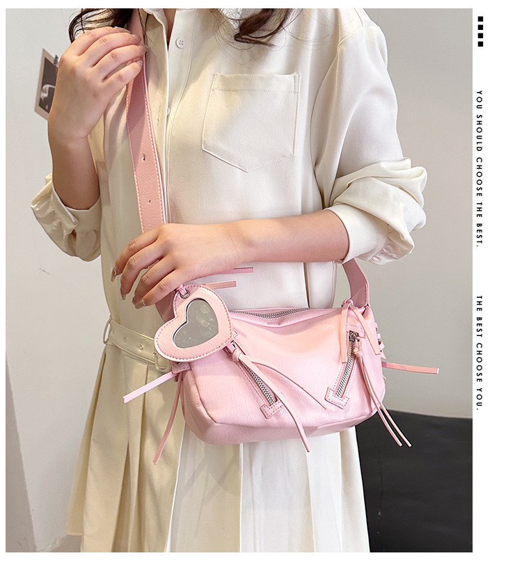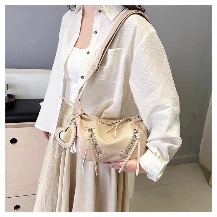 クロスボーダー pu レディースバッグトレンディなニッチデザイン 2025 新しいパーソナライズされたジッパーショルダークロスボディ小さなミラーペンダントバッグ