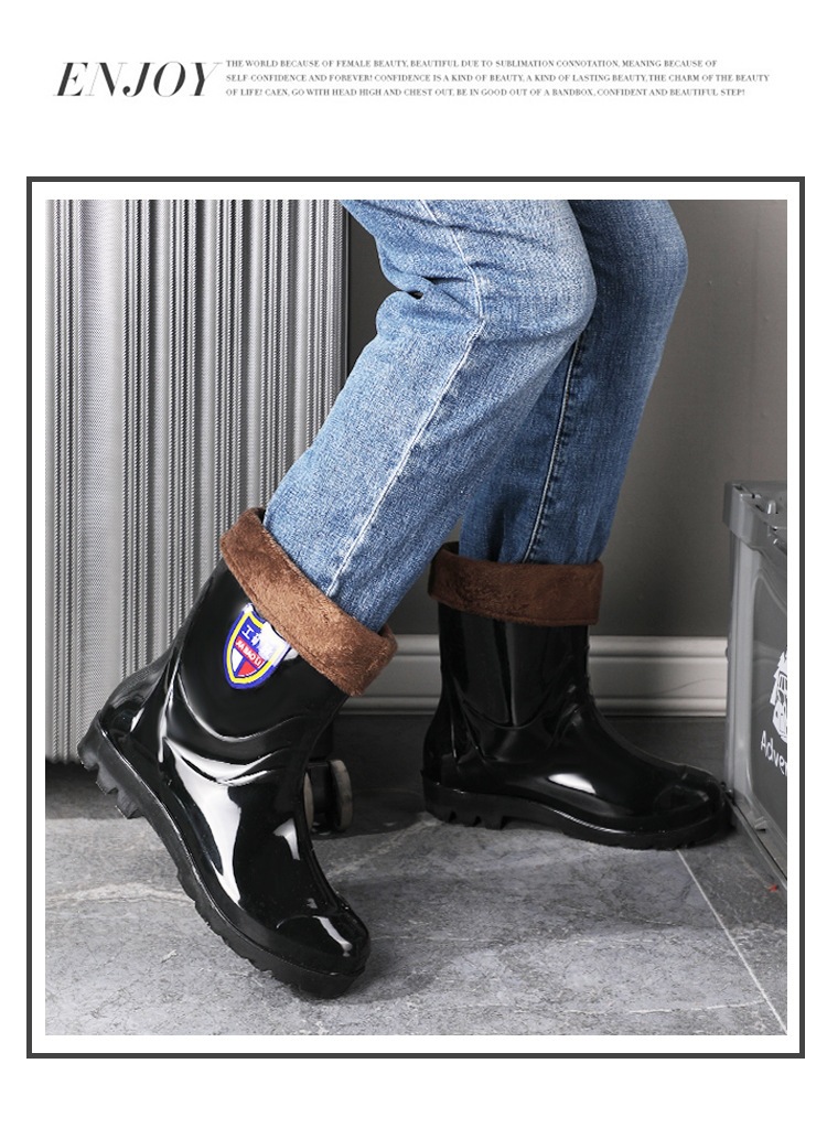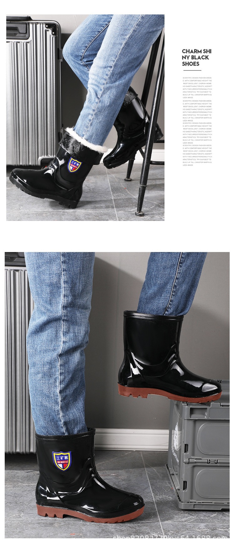 厚い低筒ゴム雨靴男性水靴雨靴保温靴カバー耐摩耗性滑り止めベルベット労働保護工事現場水靴