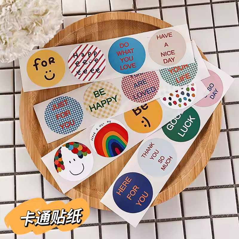 アニメ韓系円形シール500pcs/巻銅版紙不乾性かわいい子供シール卸売り