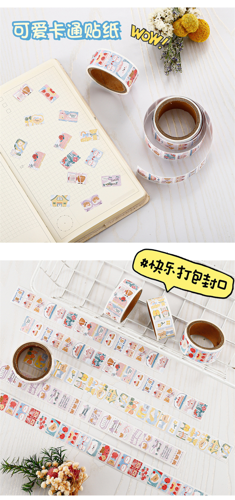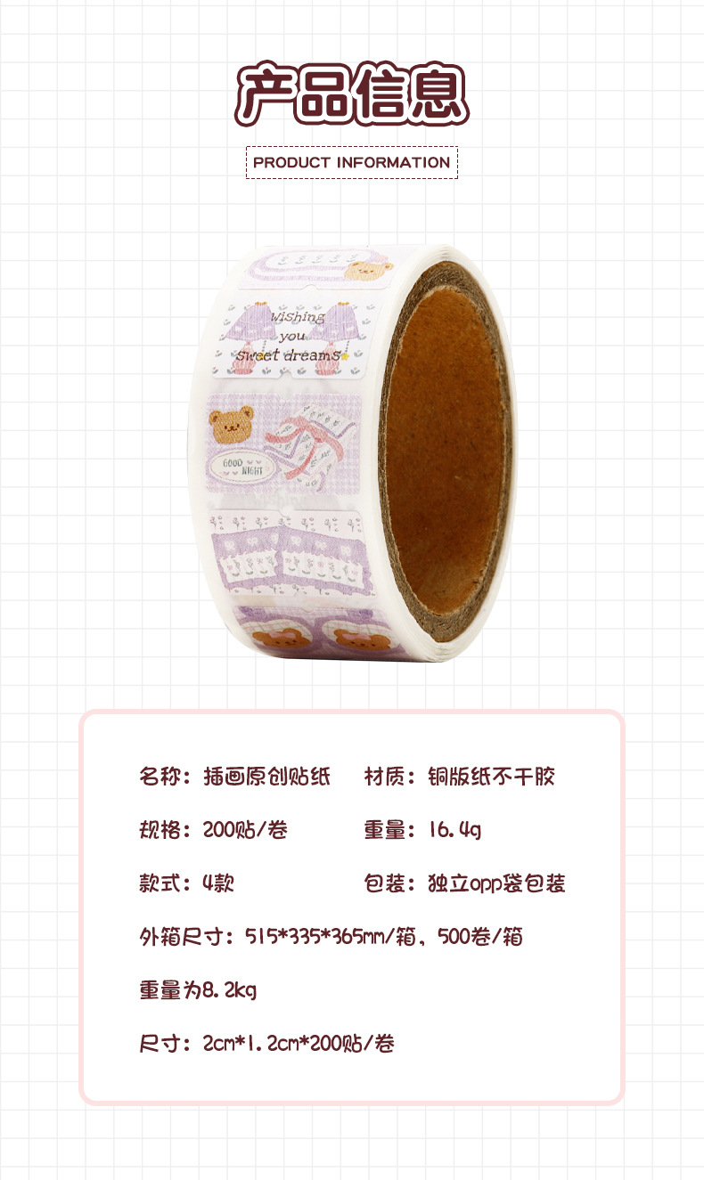 Ins風シール癒し系手描き漫画四角いシールステッカーラベル巻きシール卸売り