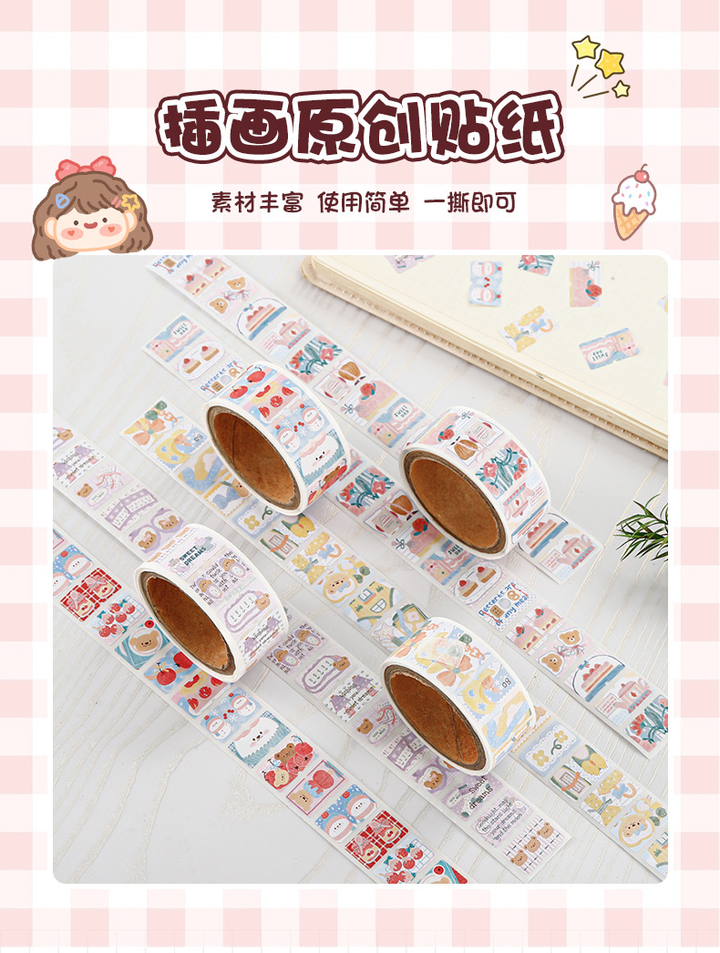 丽円オリジナルアニメ切手イラストシールかわいい鼻ガ飾りシール手帳素材巻きシール