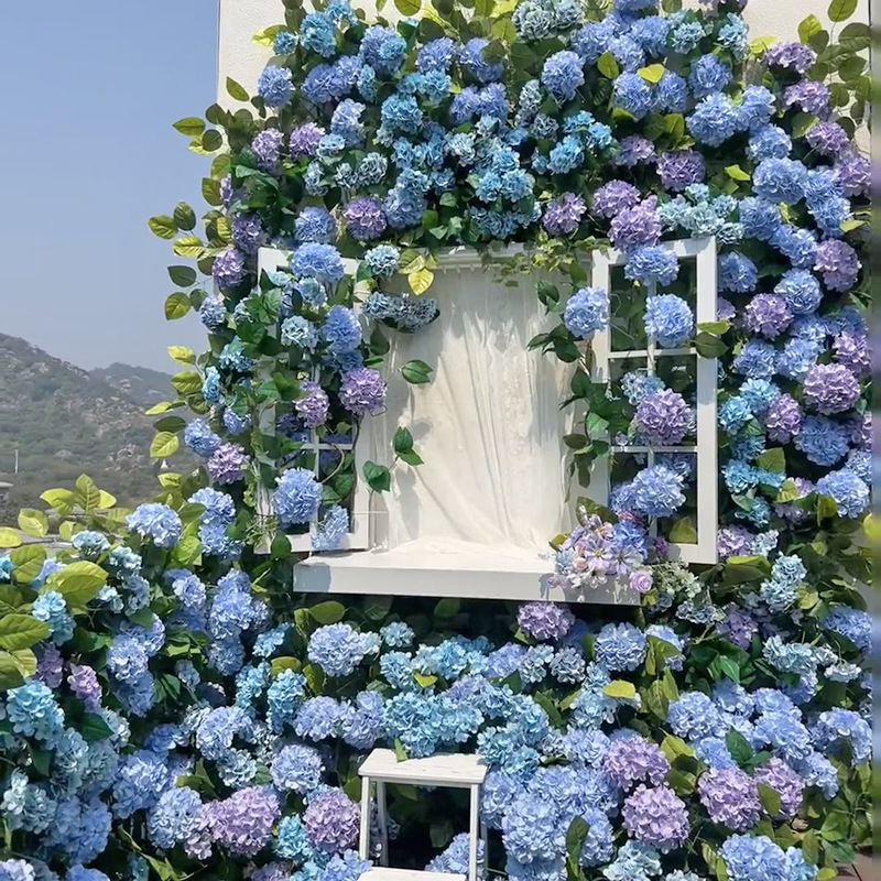 5頭のアジサイのシミュレーションの花の結婚祝いの装飾の道案内の生け花の底のアジサイの花の偽の花の結婚式の背景の壁の花の卸売り