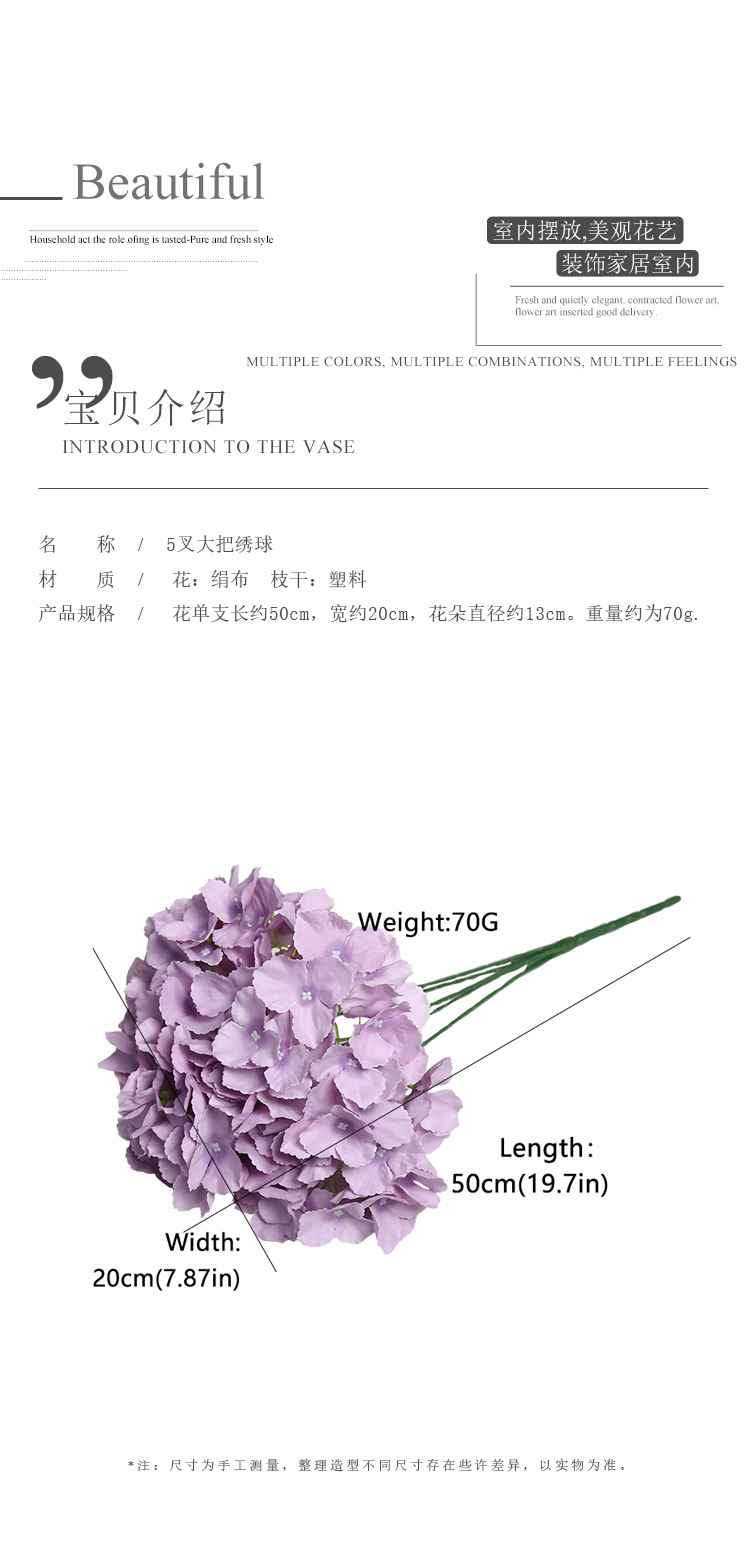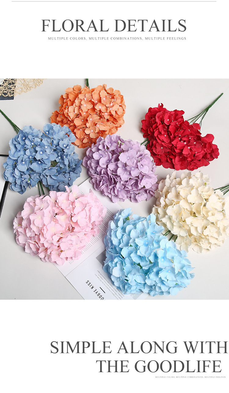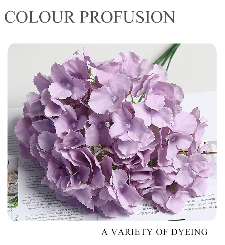 模造花5頭のアジサイは花束の壁の花を飾って結婚祝いの花材の屋外庭園工事の造花を飾っている
