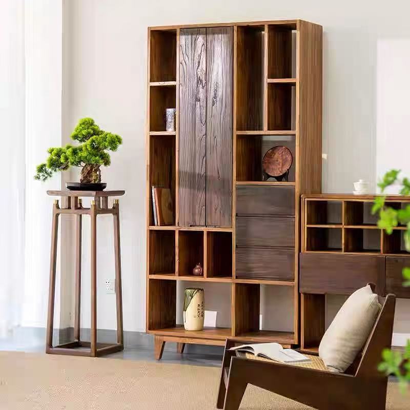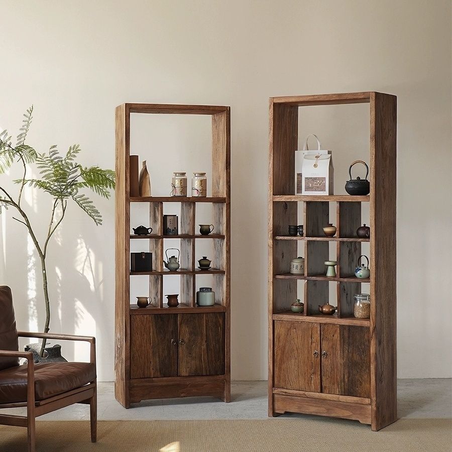新しい中国風の古いニレ材の本棚組み合わせ床置きリビングルームオフィスディスプレイキャビネット本棚ティーポットギャップボーグラック