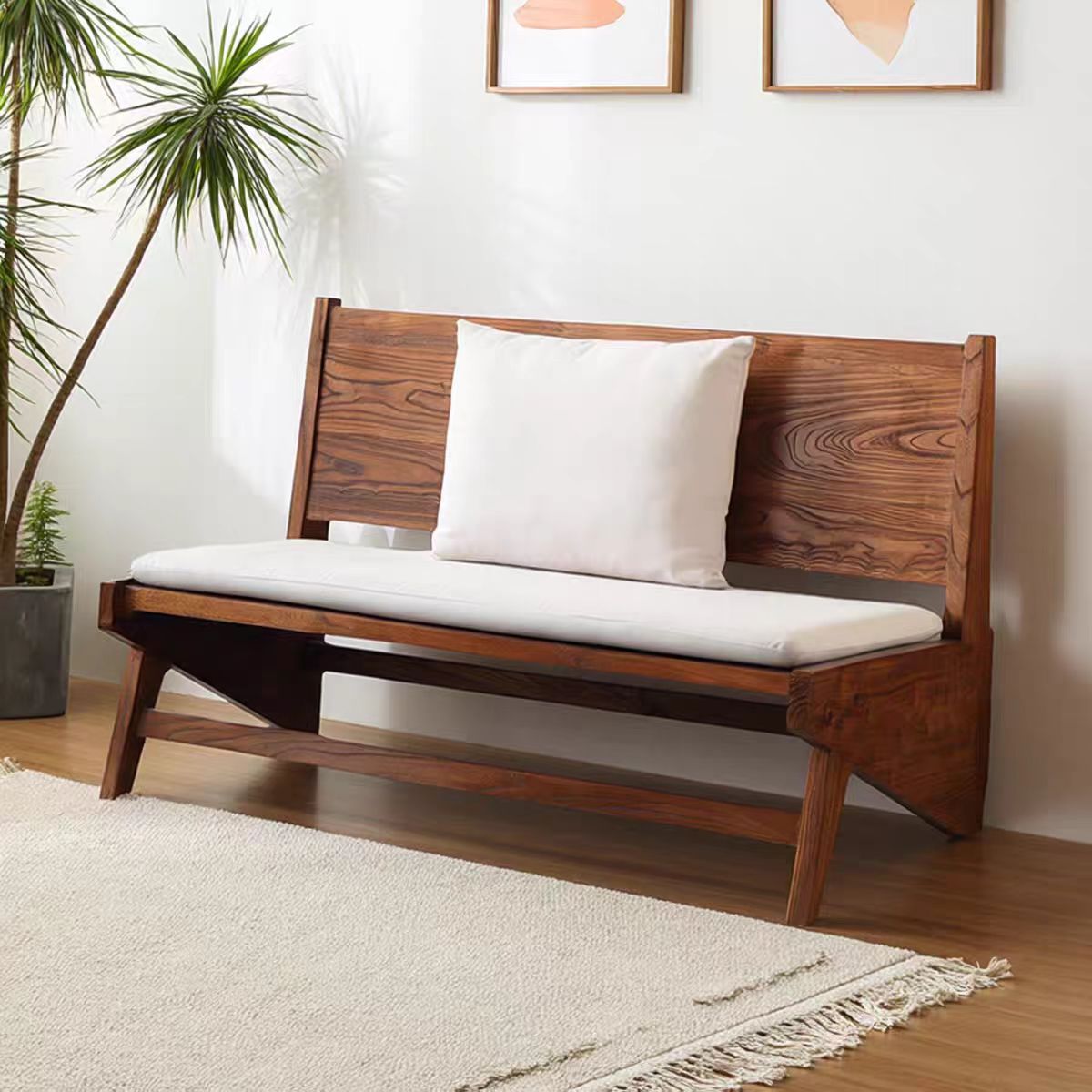 侘寂风老榆木沙发椅民宿酒店长条椅双人靠背长排椅茶椅袋鼠椅子
