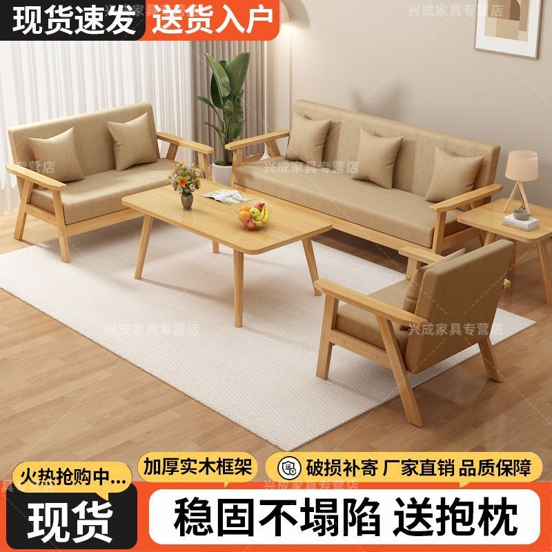 布艺沙发客厅2025新款现代简约出租房小户型实木双人沙发茶几组合