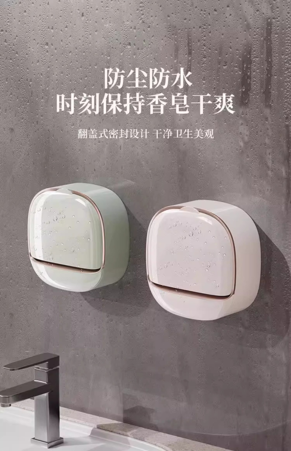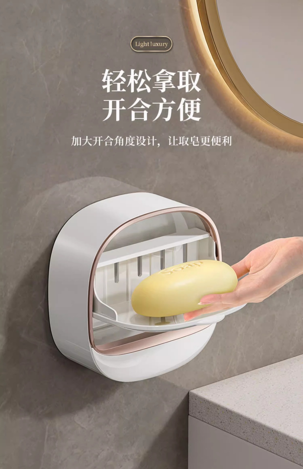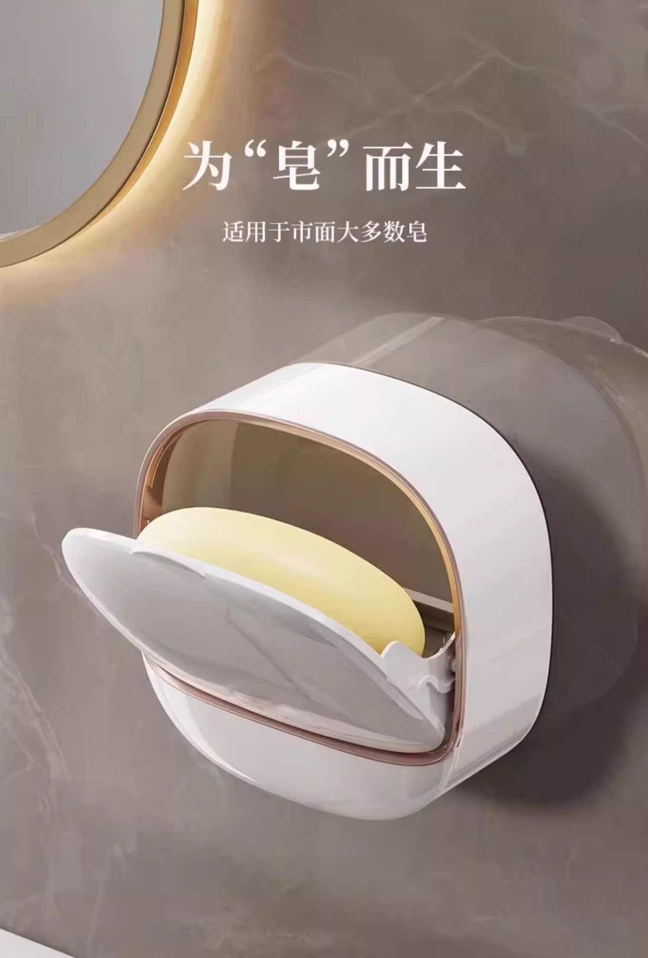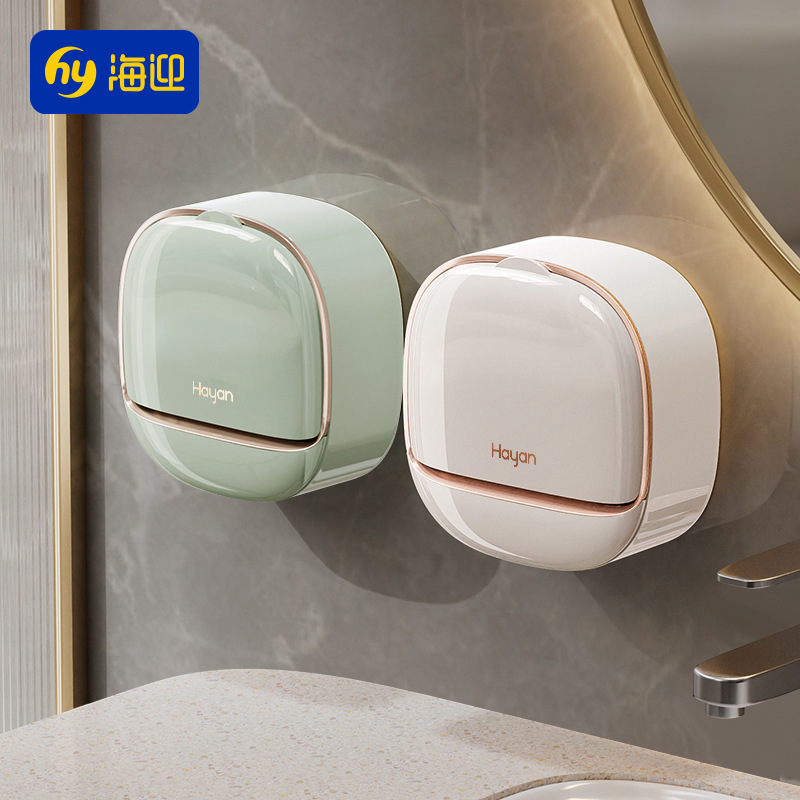 轻奢风香皂盒壁挂式免打孔肥皂盒纳盒卫生间沥水家用带盖置物