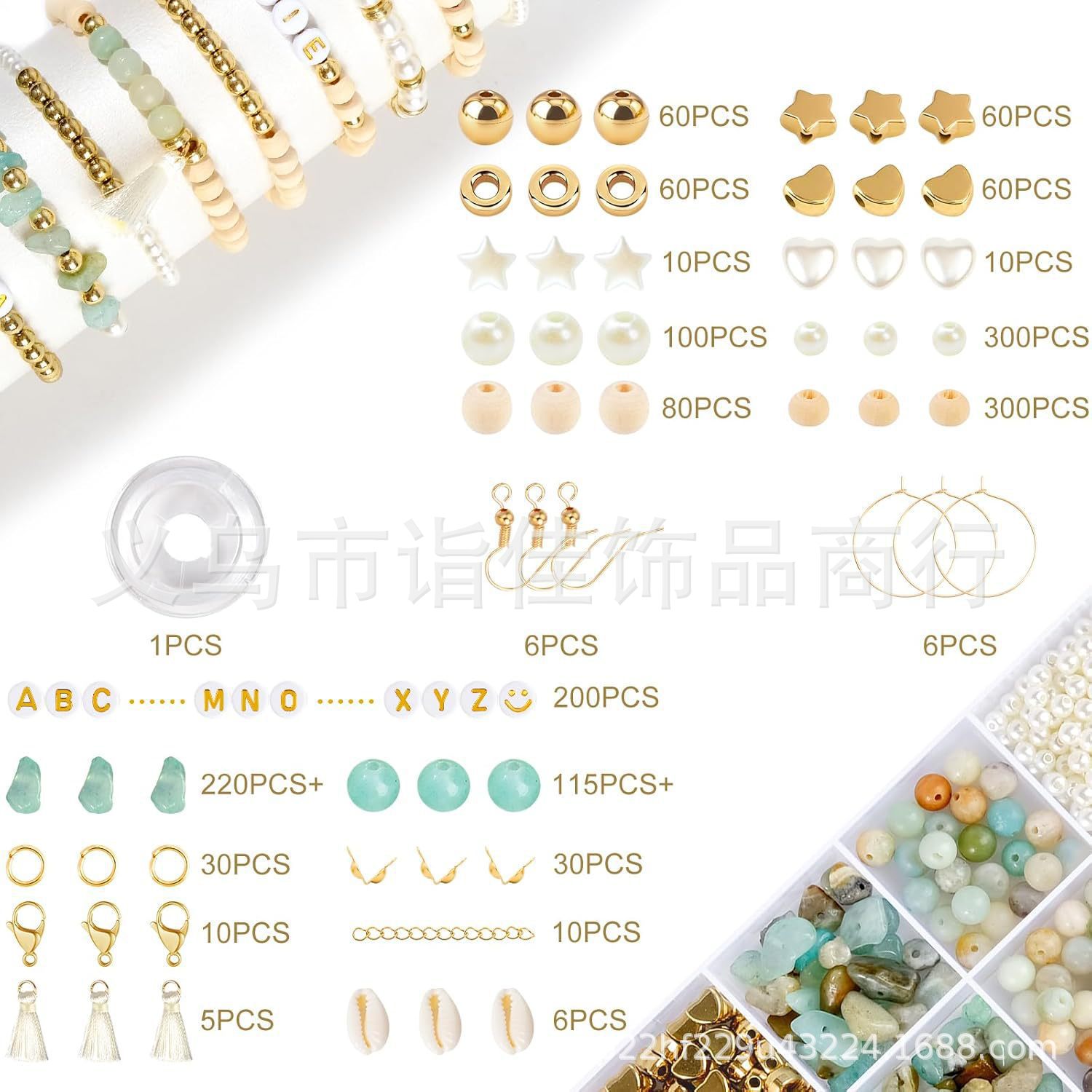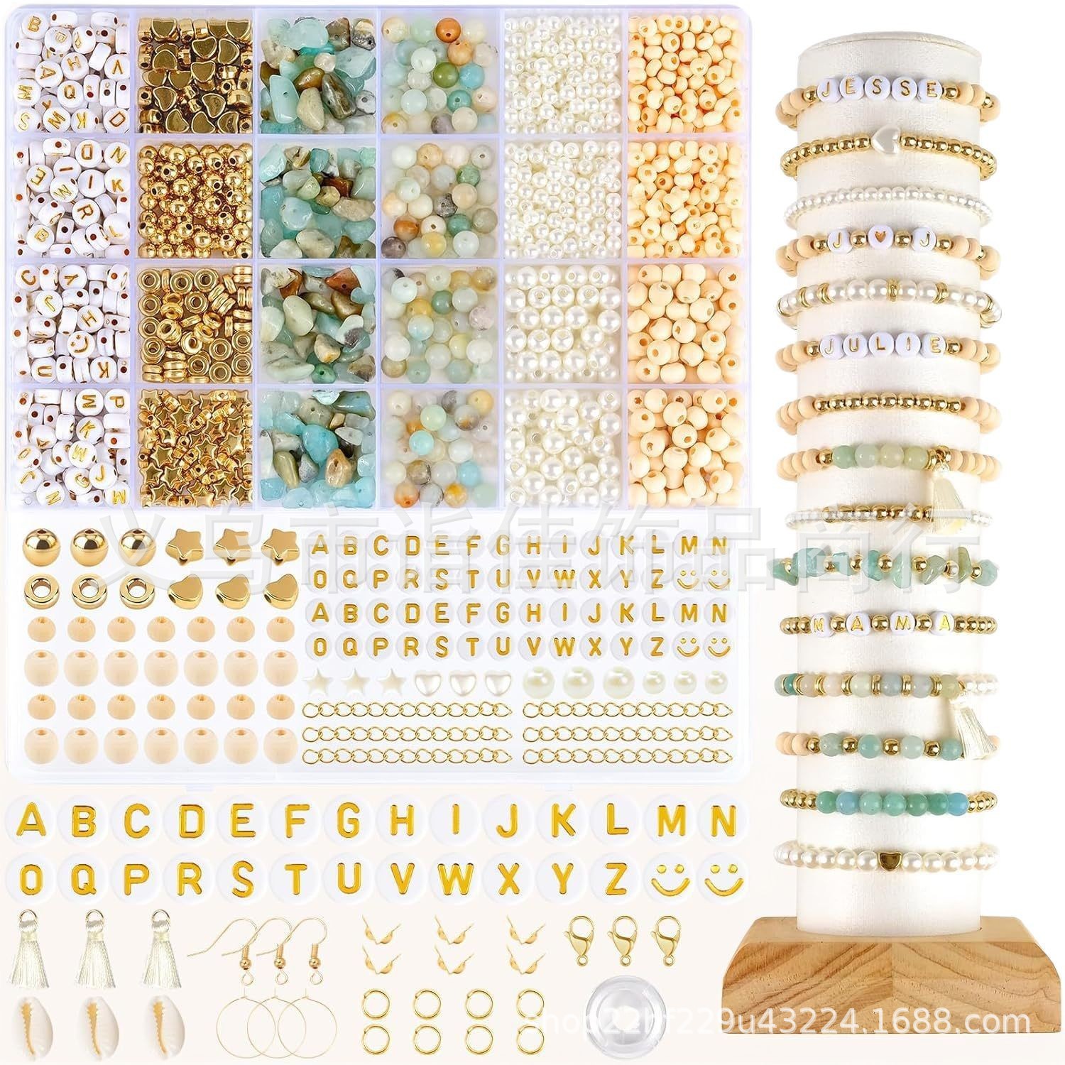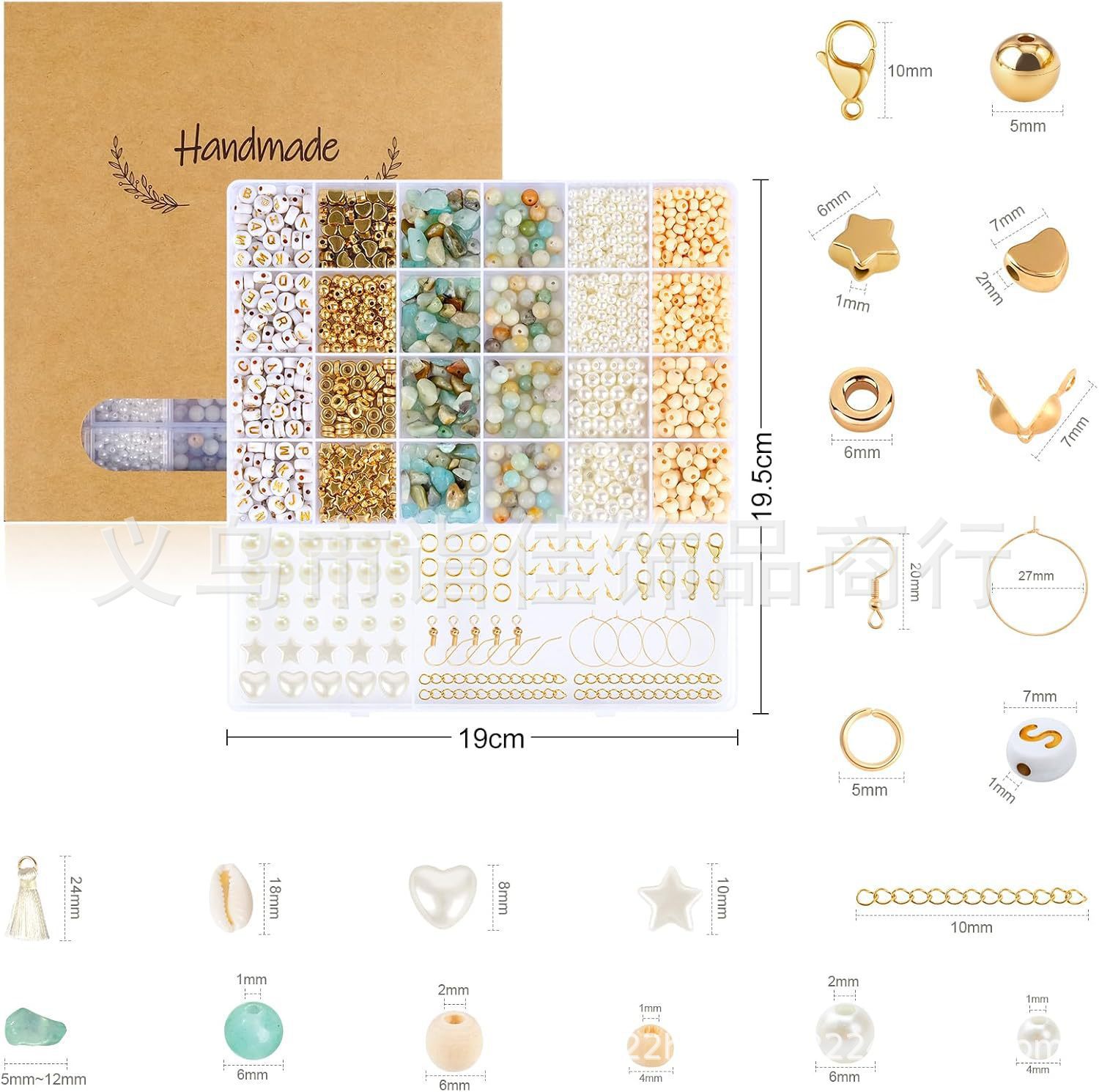 亚马逊天然石珠宝套装 DIY字母珠碎石圆珠仿珍珠串珠手链配件盒装