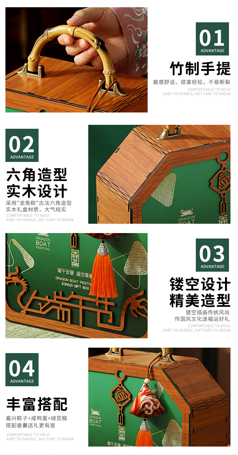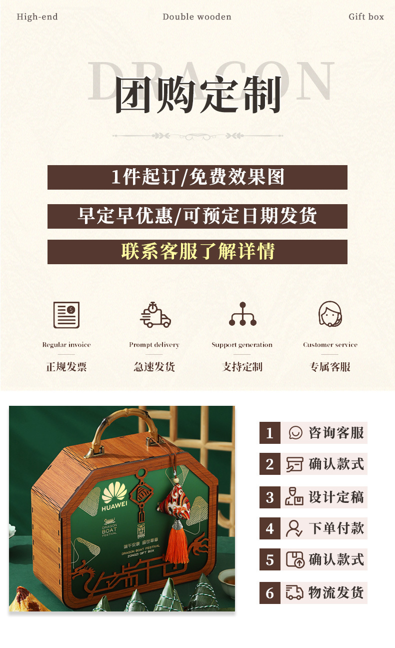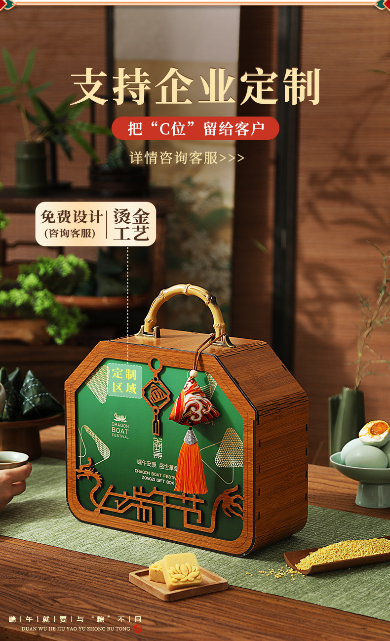 端午節 ジェロンボート 木製団子 ポータブルギフトボックス お祭り用 親戚や会社へのギフト ロゴ印刷可能
