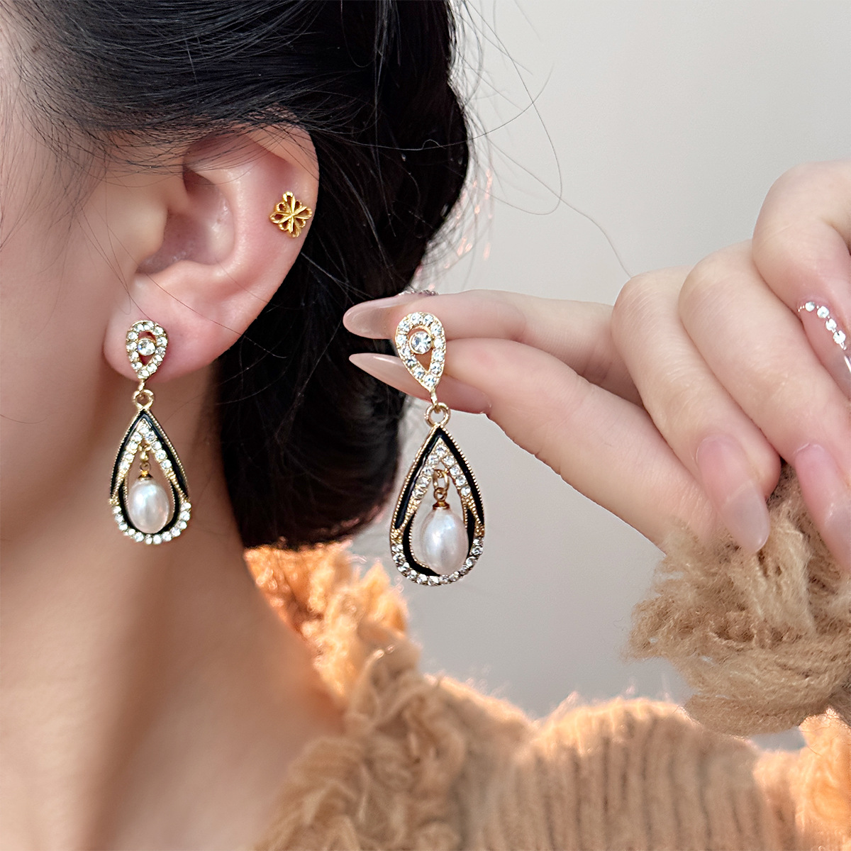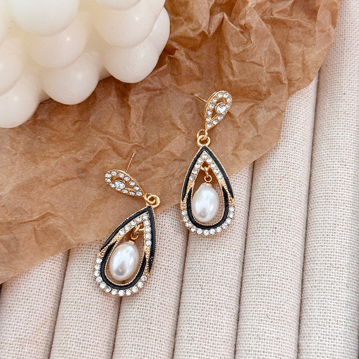 国境を越えた新しいイミテーションパールリボンイヤリングヨーロッパとアメリカのレトロファッションインターネットセレブ人気のライト高級ハイエンドイヤリング女性用