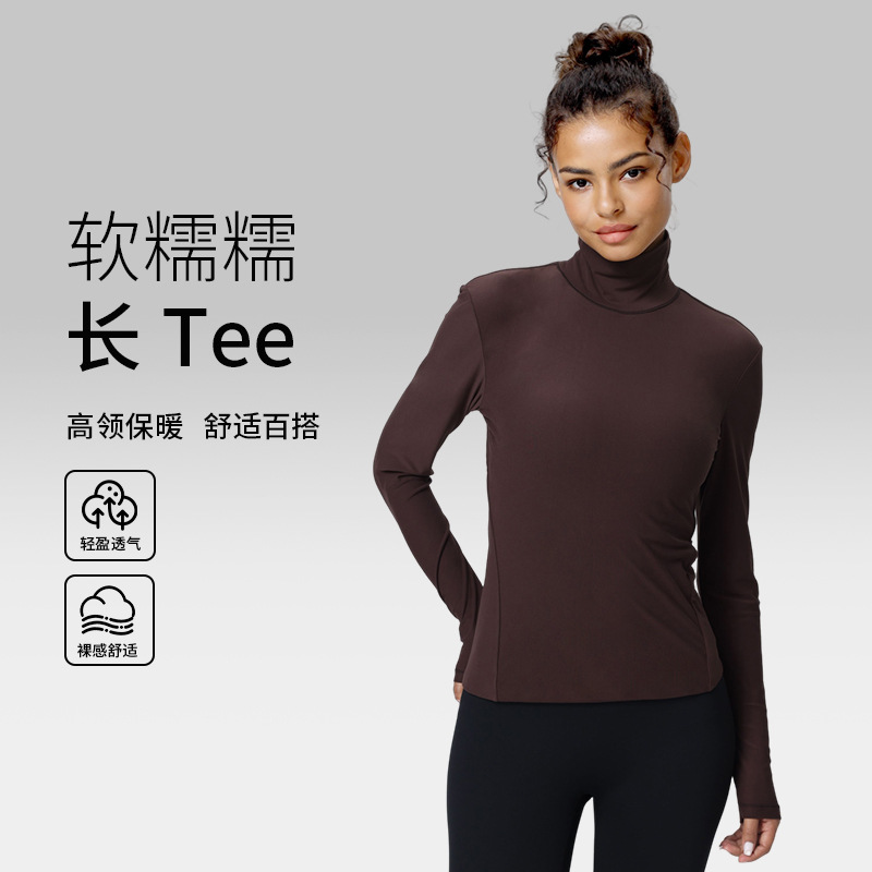 堆堆领上衣修身弹力显瘦运动长袖裸感亲肤户外跑步内搭训练健身服