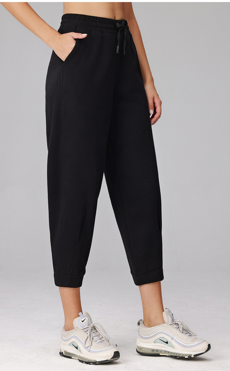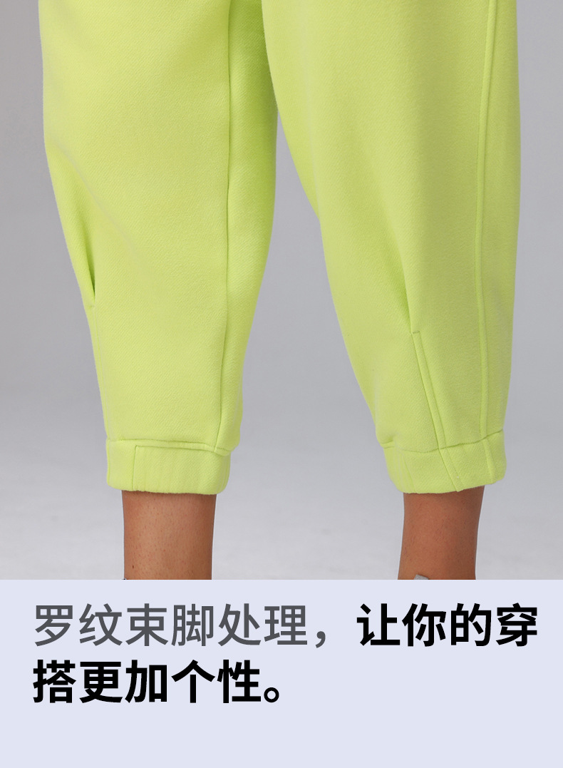 秋冬新款加绒束脚运动裤女士腰头松紧斜插口袋宽松休闲健身卫裤