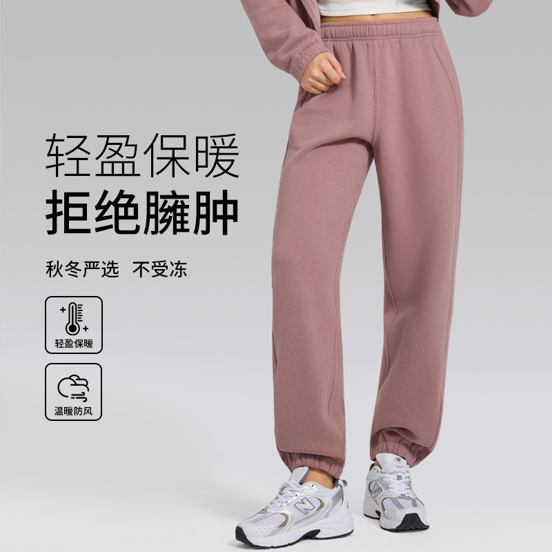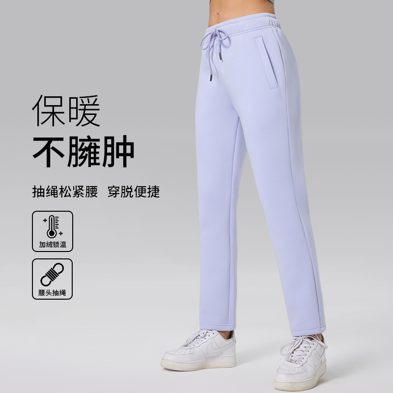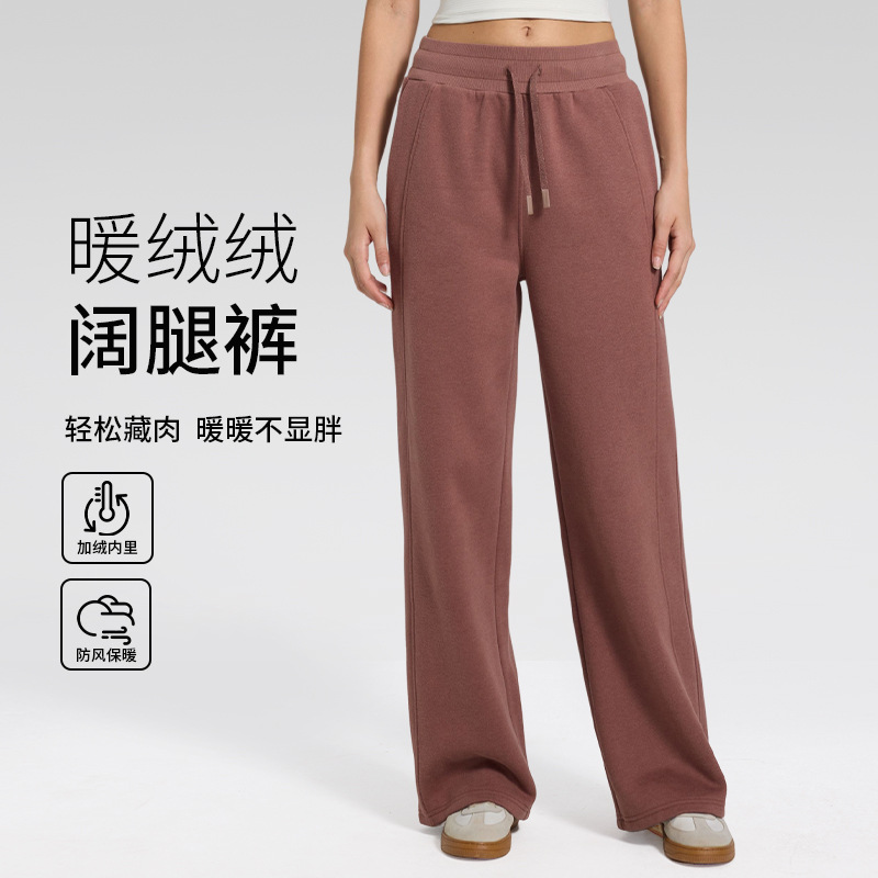 新款秋冬薄绒加厚阔腿长裤百搭保暖户外跑步健身瑜伽裤休闲卫裤女