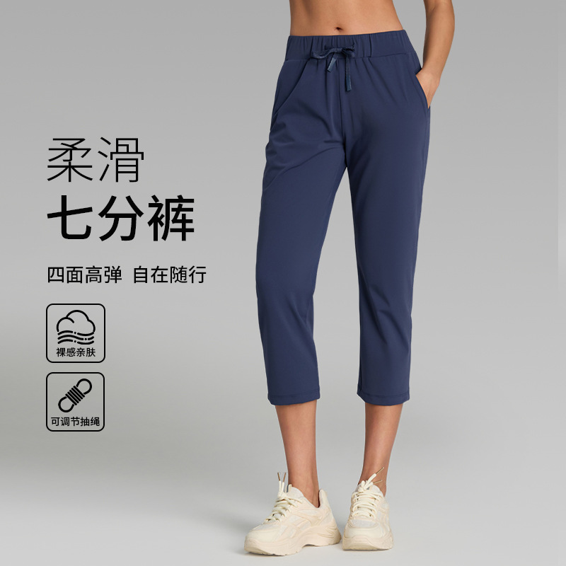 新款轻薄防晒束腰弹力宽松直筒七分运动裤女跑步休闲健身瑜伽裤