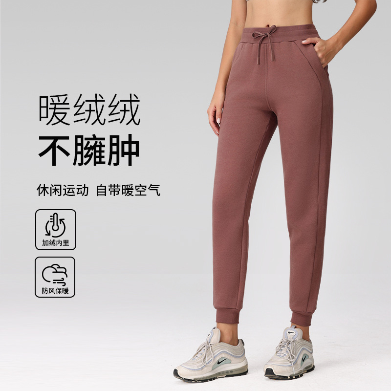秋と冬の薄いベルベットのハイウエストカジュアルスウェットパンツ、厚みのあるレギンスパンツ、スリムで多用途、暖かいアウトドアフィットネスヨガパンツ
