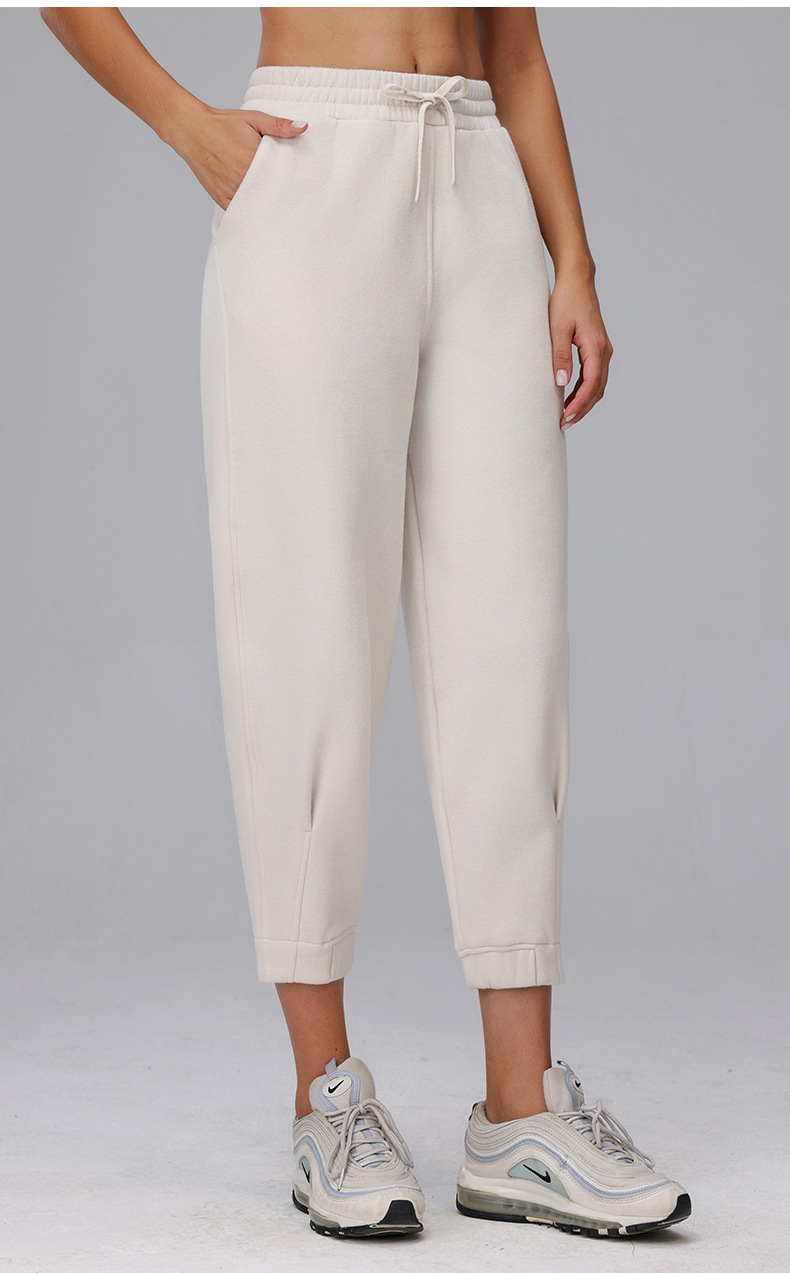 秋と冬の薄いベルベットの屋外厚みのあるレギンスクロップドパンツ多用途ルーズカジュアルパンツワイドレッグスリム暖かいヨガパンツ女性用