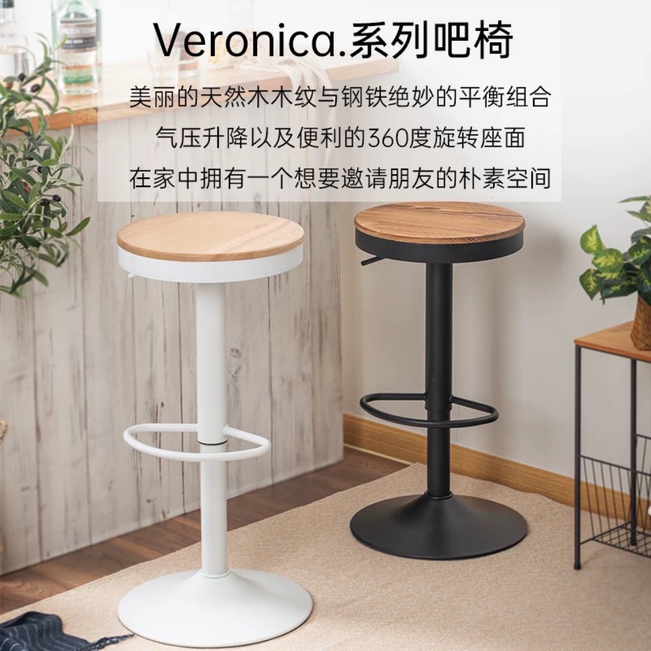 回転バーチェアホームファッションハイアイアンレジャーチェアバーレストランシンプルなスタイル日本製無垢材回転スツール