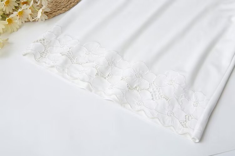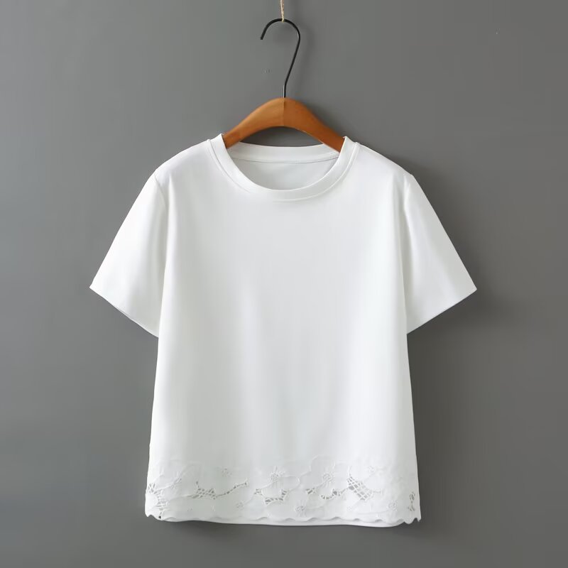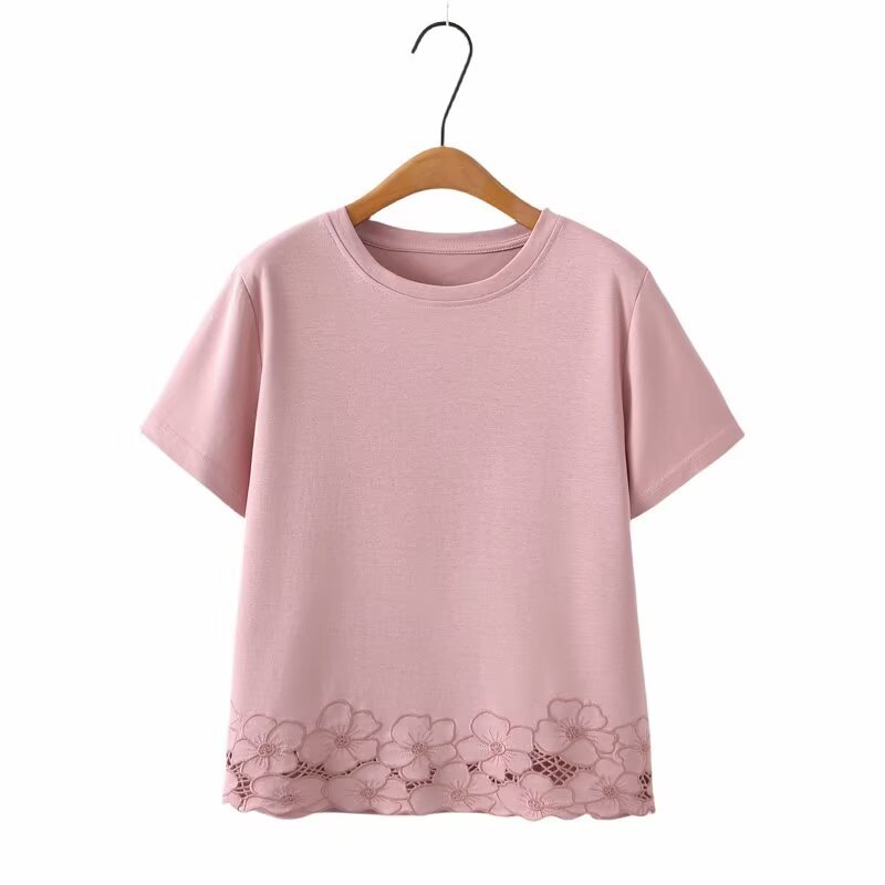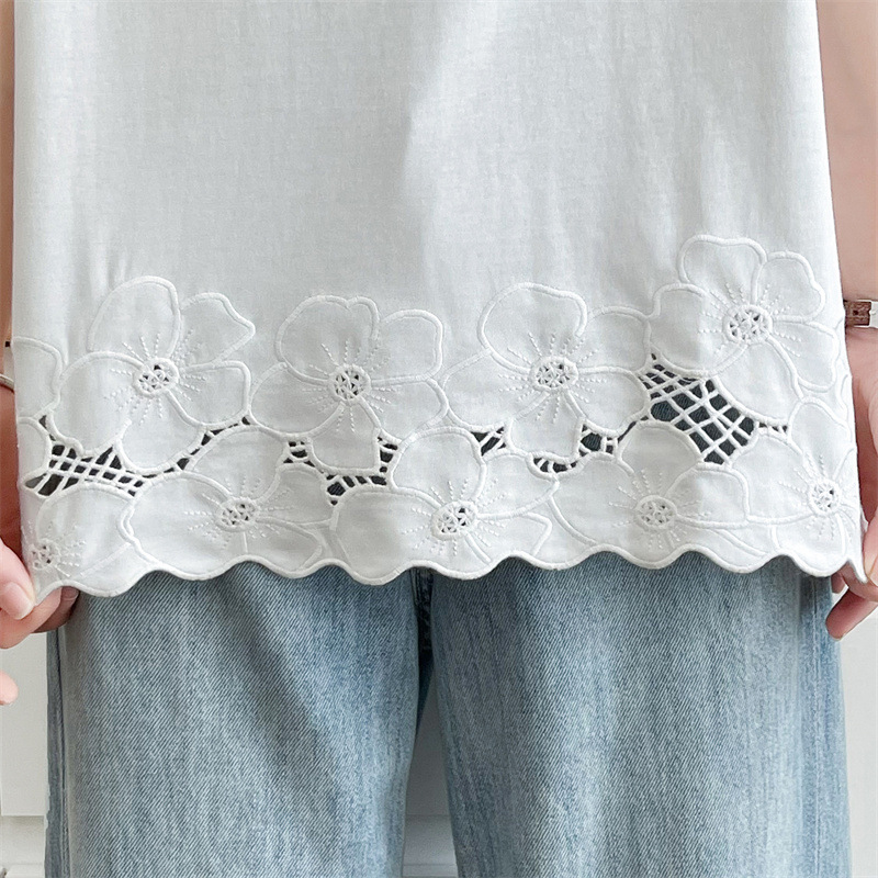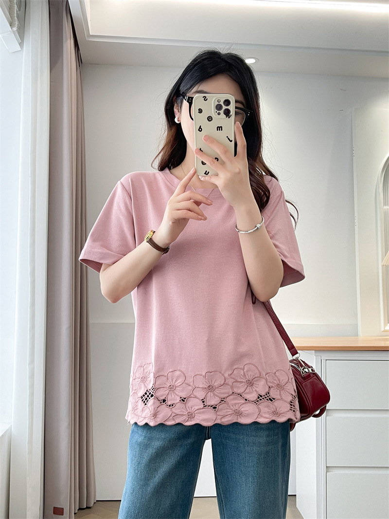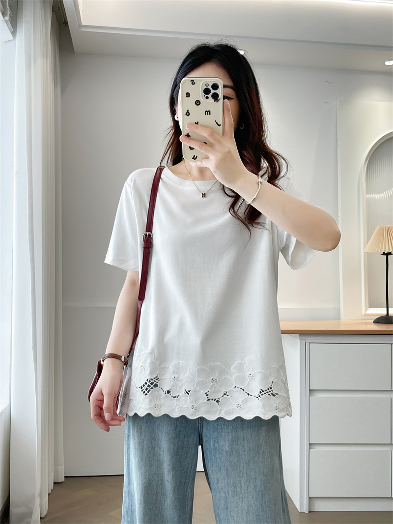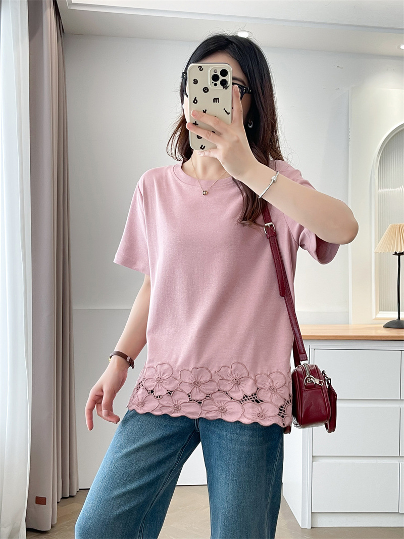2025 夏大きいサイズの女性のシャツ半袖レース中空 Tシャツファッショナブルなシンプルなファット mm トップ多用途ニッチ 666