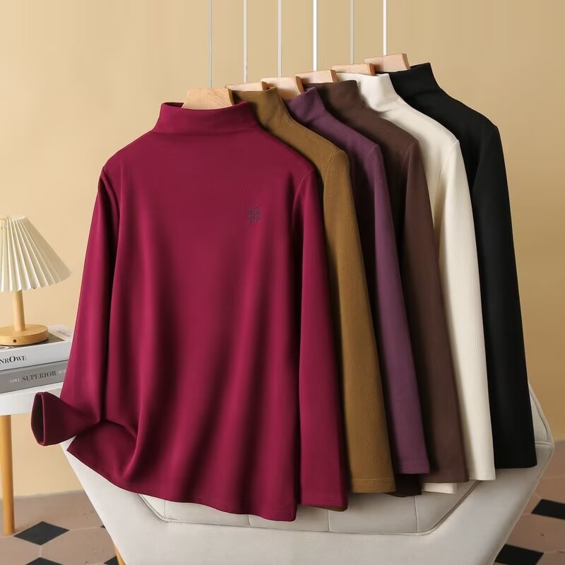 2024秋の大きいサイズの長袖の底のシャツの半分の高襟の婦人服の中で組み立ててやせて太っているMM200斤の弾力の上着の897