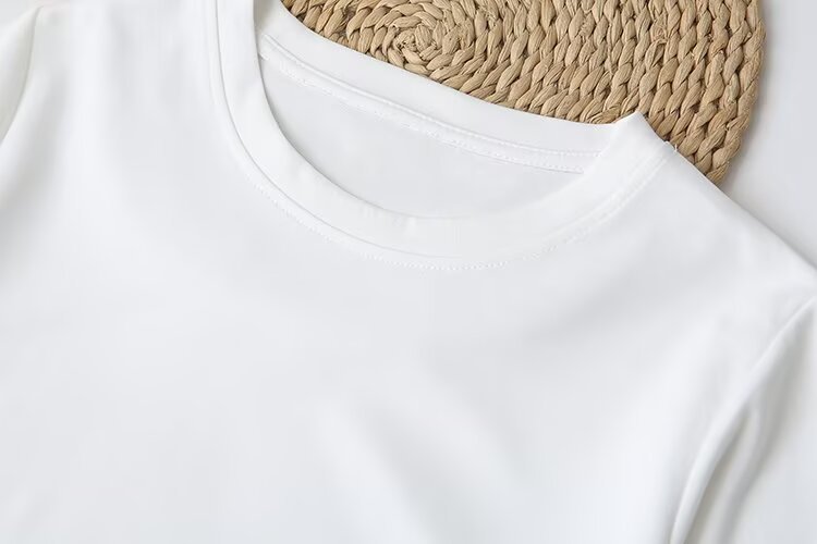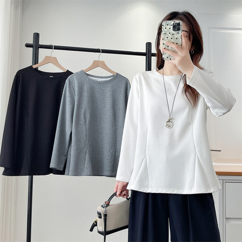2025秋大码荷叶边打底衫长袖圆领简约女上衣胖mm内搭纯色T恤819