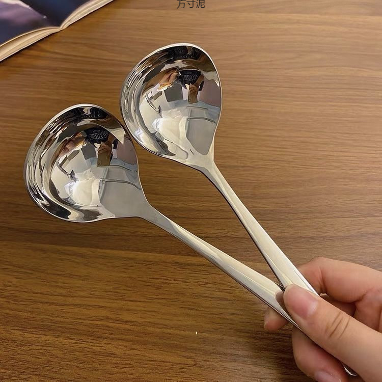 厚みのある見栄えの良い家庭用ステンレス鋼ザルスプーンキッチン大型スープスプーン深めスプーンロングハンドル鍋