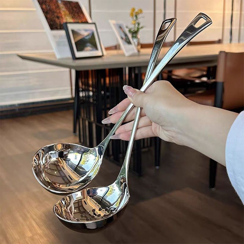 商用火锅汤勺漏勺加厚不锈钢家用盛汤匙长柄大号调羹稀饭粥勺子