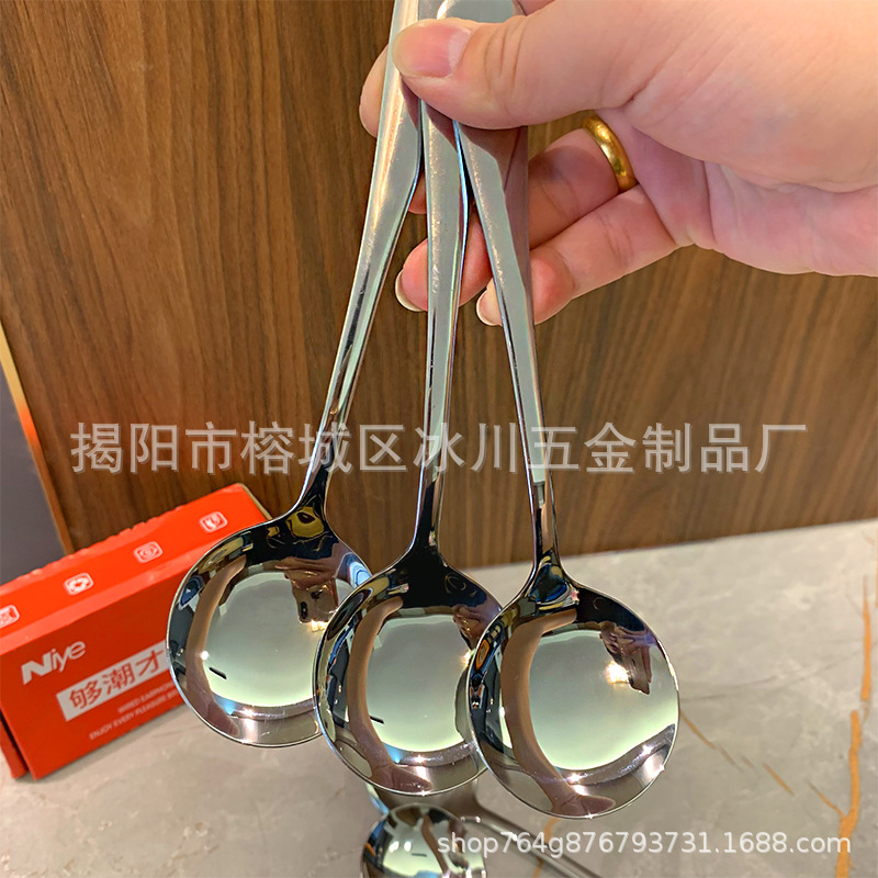 304ステンレススプーン家庭用長柄スプーン大サイズ粥スプーン円形深湯漢式スプーン高颜値
