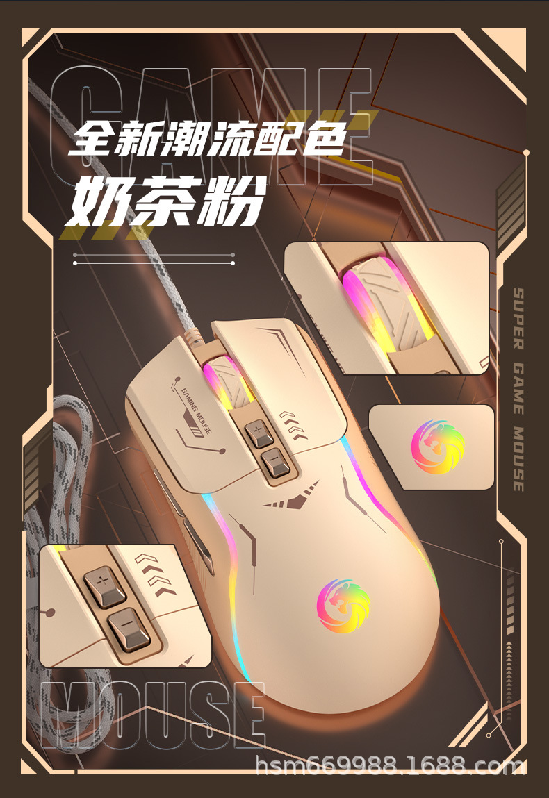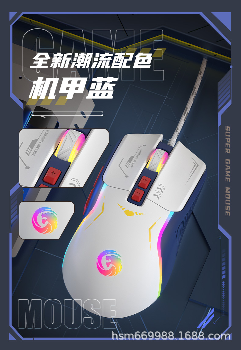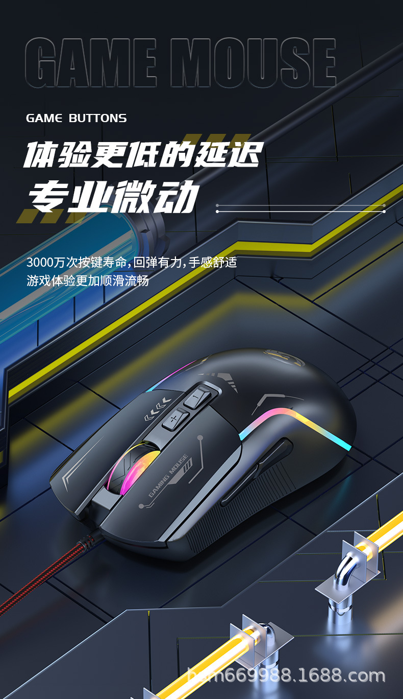 クロスボーダー爆発ゲーム有線マウス機械RGB軽量化電気競争マクロ定義鶏発光マウスプライベートモデル