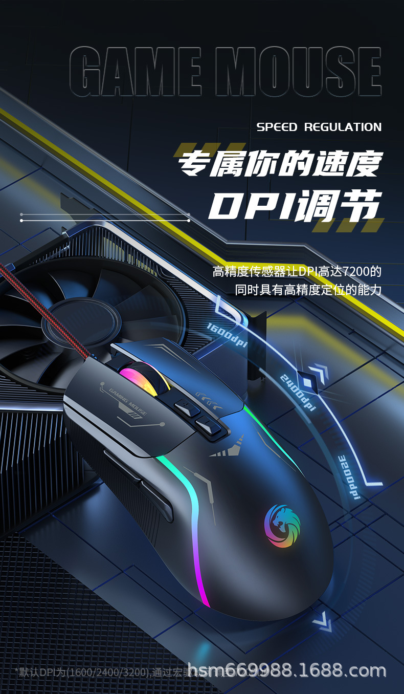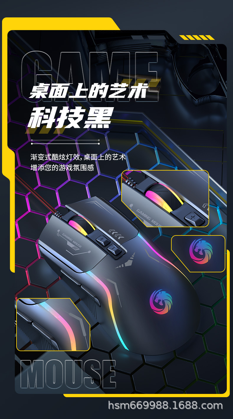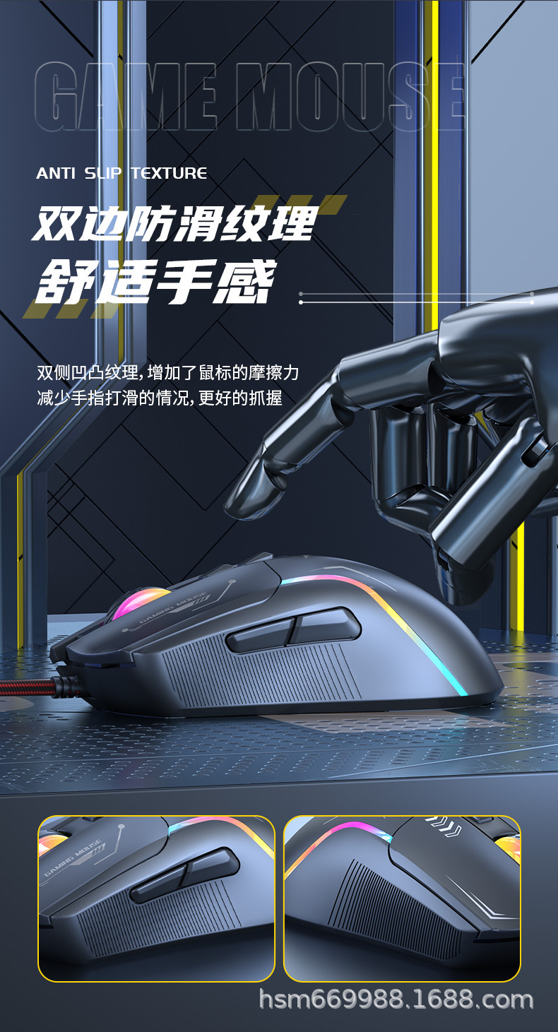 クロスボーダー爆発ゲーム有線マウス機械RGB軽量化電気競争マクロ定義鶏発光マウスプライベートモデル